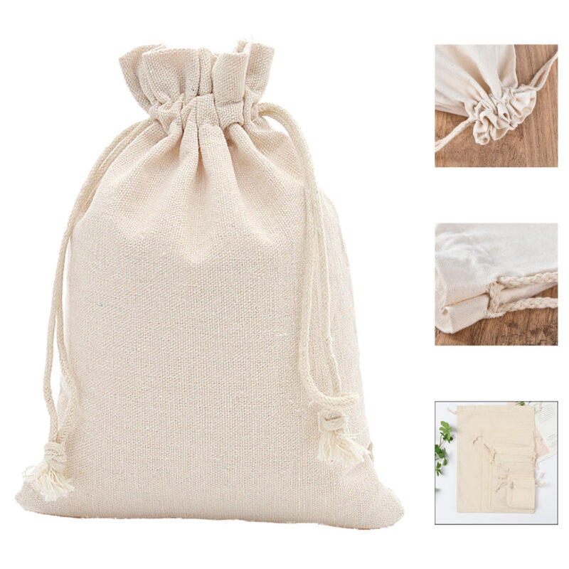 Natural Cotton Linen Drawstring Pouch