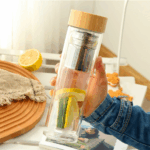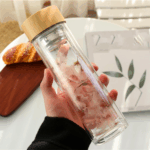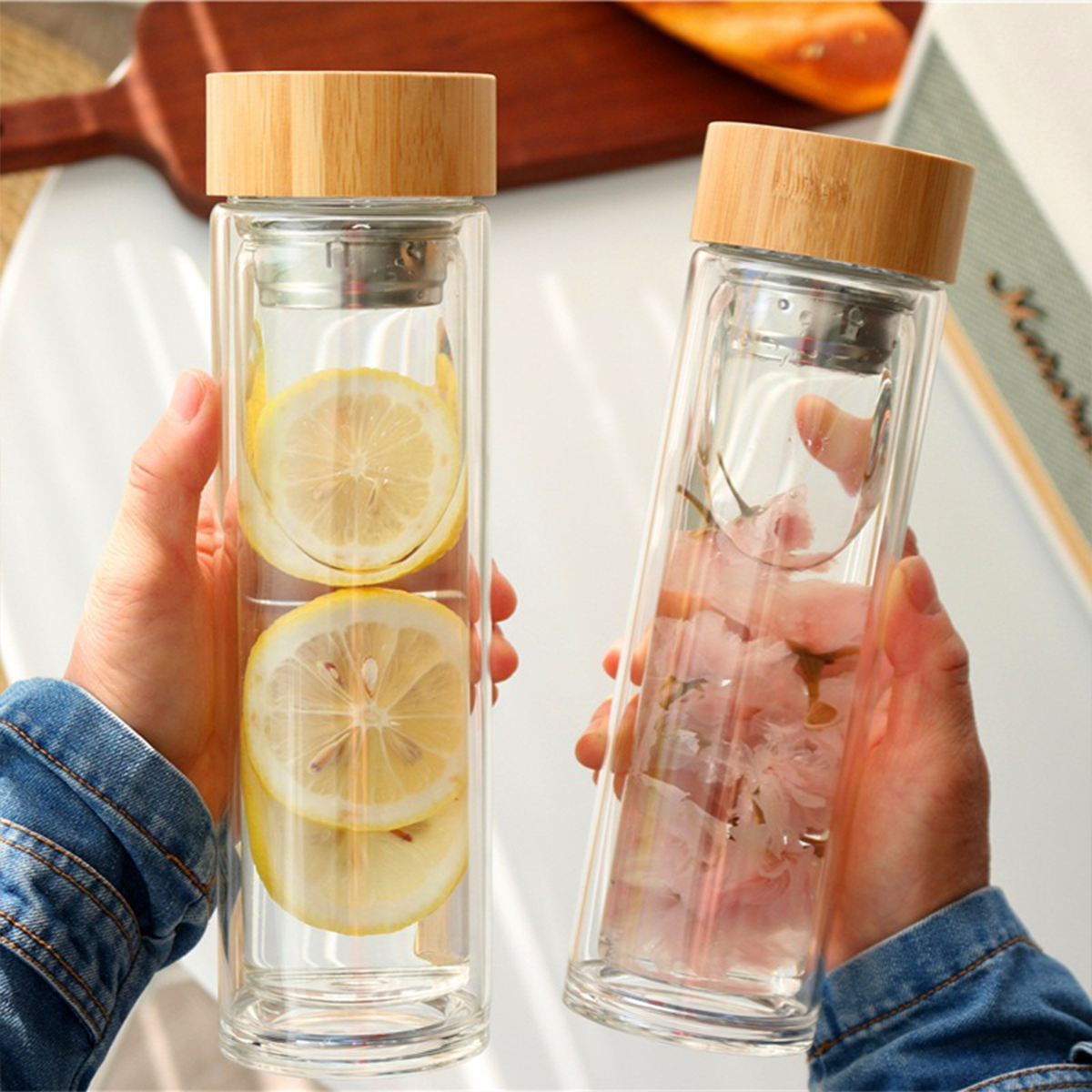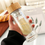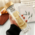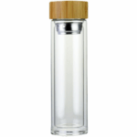 This bamboo tumbler has a 13 oz. capacity, perfect for daily use. Its design ensures no spills, making it great for everyday carrying. It comes with two removable infusers for brewing your favorite drinks. One is for loose tea or coffee, while the other is for infusing fruit in drinks. Stay hydrated on the go with this stylish and practical insulated water flask.