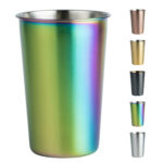 Get your party on with all of the colors of the rainbow in these cool party cups. Made of food grade 304 stainless steel, these cups have a rolled rim and a 16 ounce capacity. What a colorful way to enjoy beer, wine, cocktails, sodas, soft drinks and so much more! The stackable design makes for quick and easy cleanup and storage.