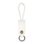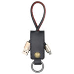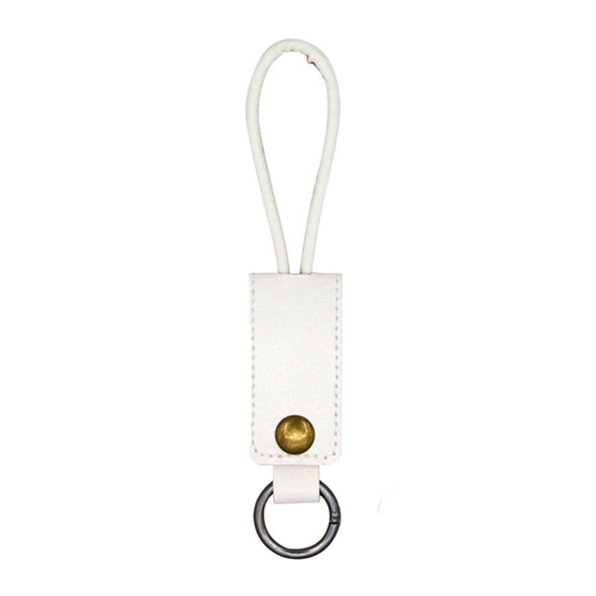 This phone charging cable features a key chain ring for easy attachment to your handbag or keys. Charge and sync your device conveniently with up to 2A charging current. Its durable, tangle-free design includes wide-diameter wires with a braided jacket. The cable is made from PU leather collector material with a USB connector, and its strong nylon knitted coat prevents twisting.