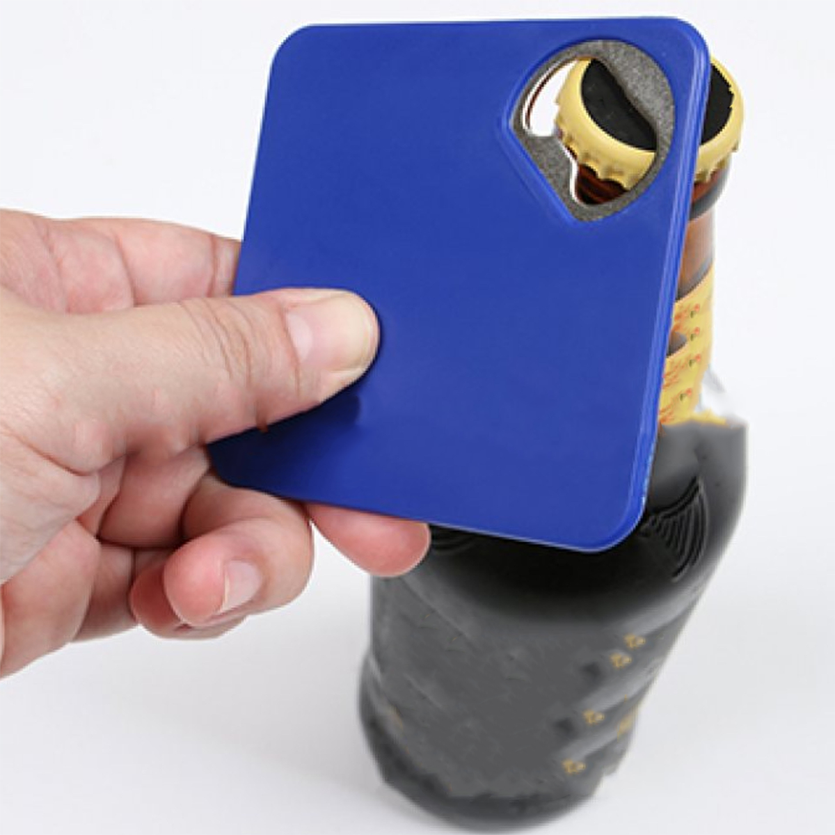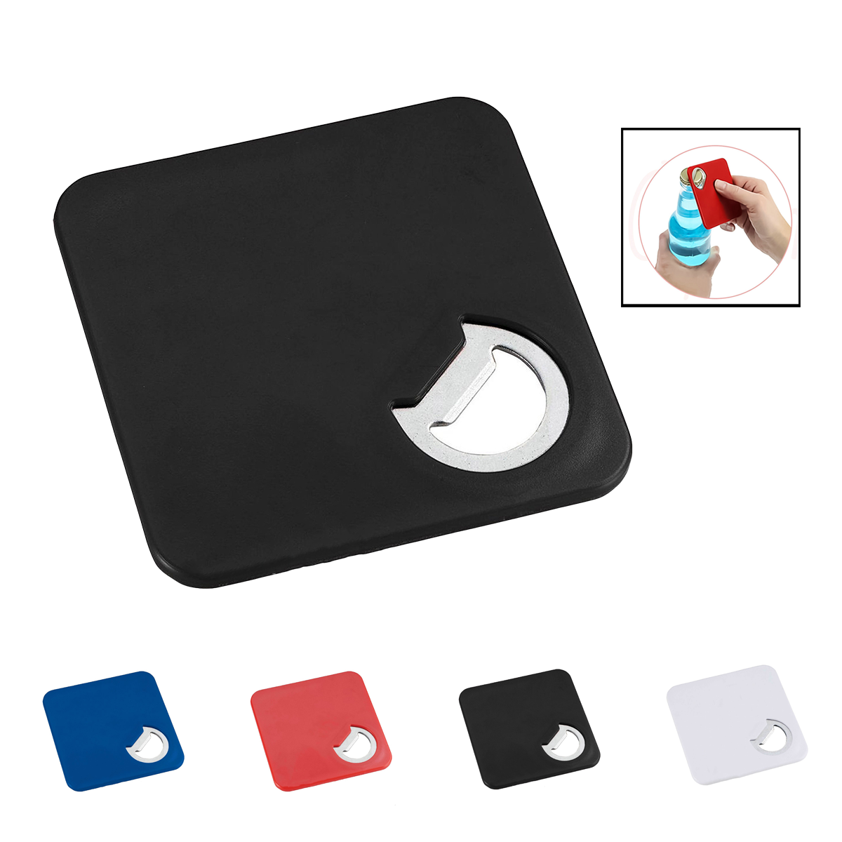 The square bottle opener coaster is a versatile promotional gift that also acts as a non-slip pad. With its cushioned bottom and convenient opening mechanism in the top corner, it serves multiple purposes. It's perfect for distributing at sports venues, beer tastings, trade shows, and outdoor events.