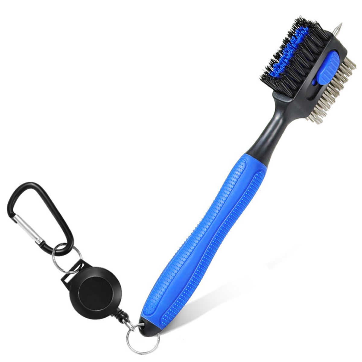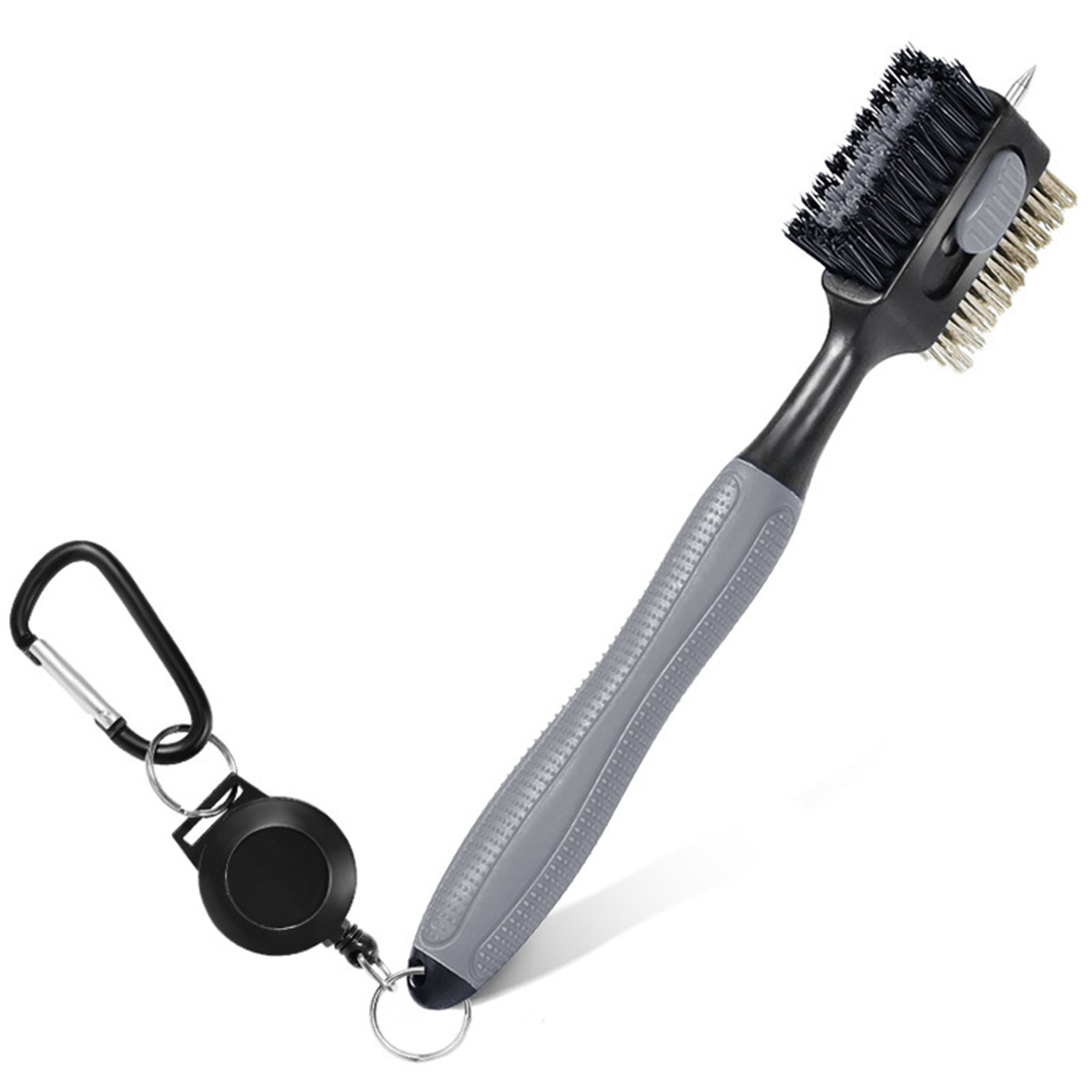 The golf brushes are nicely made, nylon and steel wire bristles can effectively clean club heads and keep the dirt out of your grooves. Our golf club cleaner brush has very dense bristles, saving you more time and efforts. Rubber handle is non-slip and gives you a comfortable grip. All these features make cleaning your club face easy and fast. Different from other golf club cleaner, spike of our golf club cleaning brush is retractable.