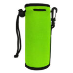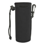 This neoprene bottle bag keeps a 20 oz bottle secure. It includes a swivel clip, belt loop, and drawstring closure for easy attachment. The swivel clip can attach to bags or belts, and the belt loop offers a hands-free option. It's perfect for hiking, biking, or daily use.