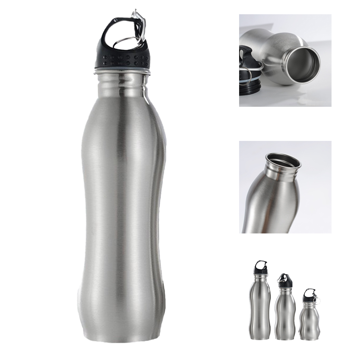 The curve 25oz sports bottle has a twist-on lid and single-wall construction. Our stainless steel water bottles is the perfect way to gain visibility at trade show, company picnics, marathons, football, baseball, and more!