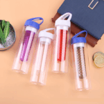 This water bottle is made from safe plastic that is shatterproof and durable. Its see-through design shows off the fruit-infused water, making it even more tempting to sip on. The flip top cap is easy to use.