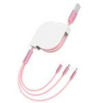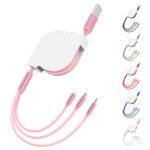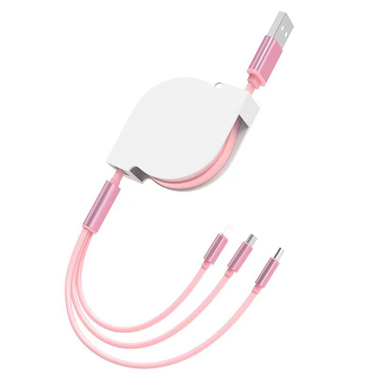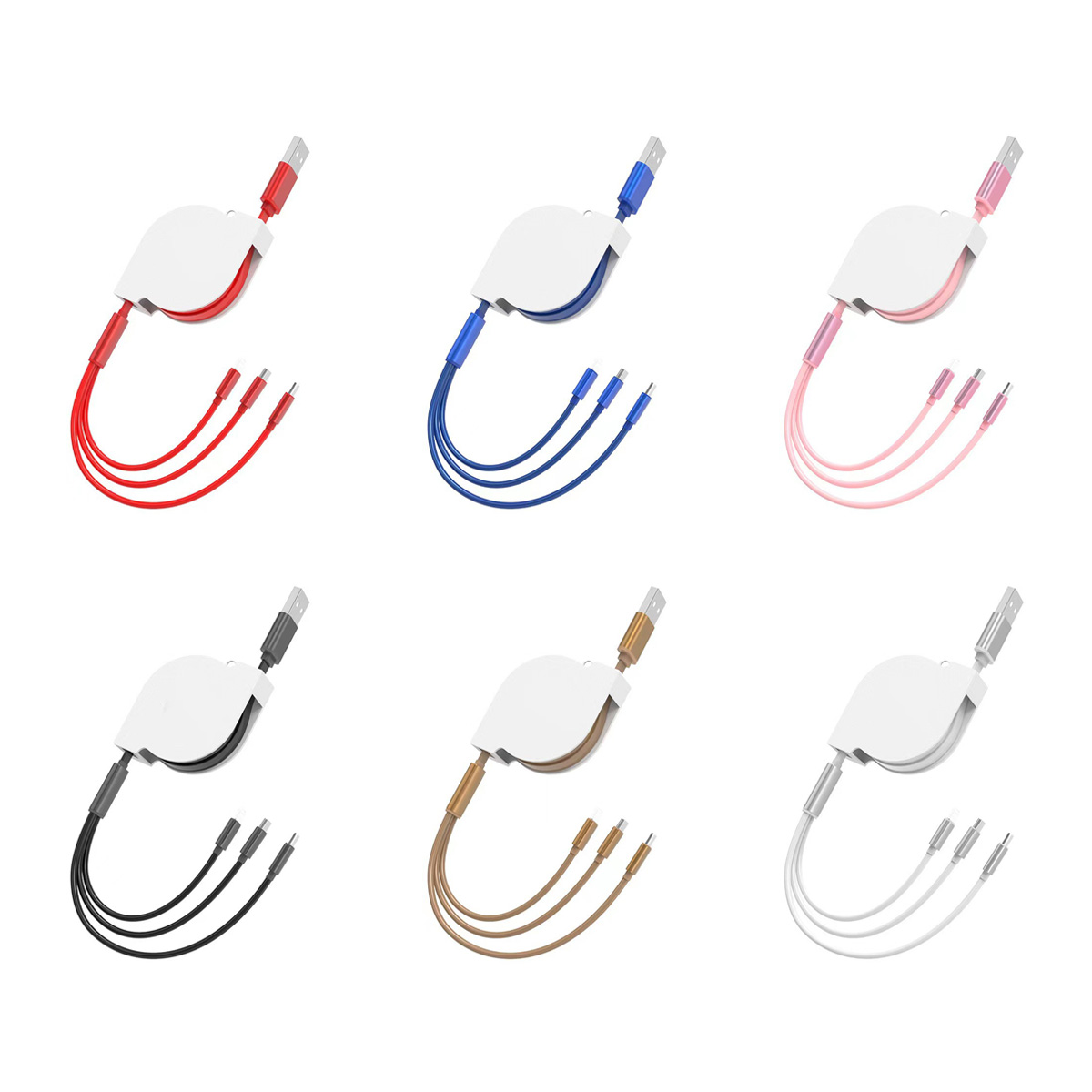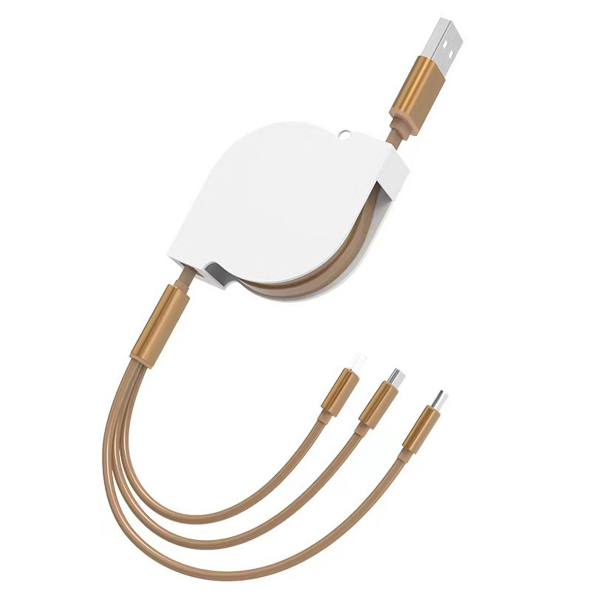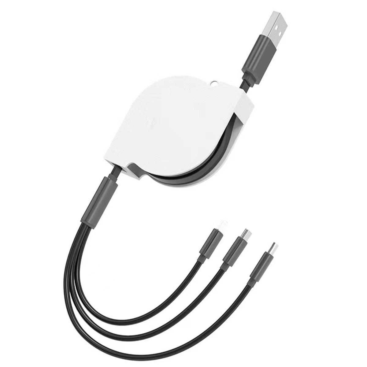 Introducing our versatile 3-in-1 mobile data cable, designed for fast charging at 2.4A. It offers flexibility for any situation. Made of durable TPE material, this cable is resistant to breakage. It can be easily shrunk for convenient storage.