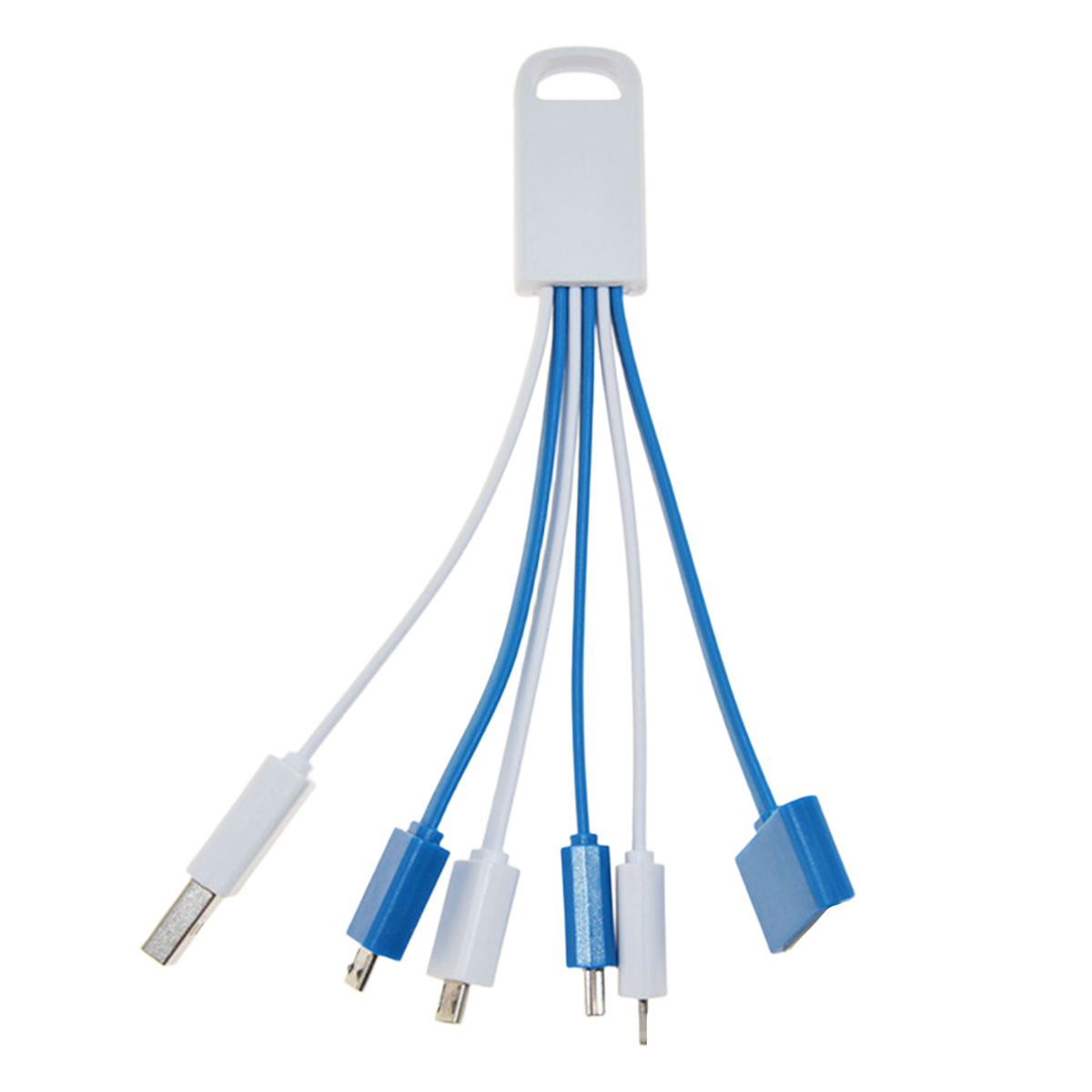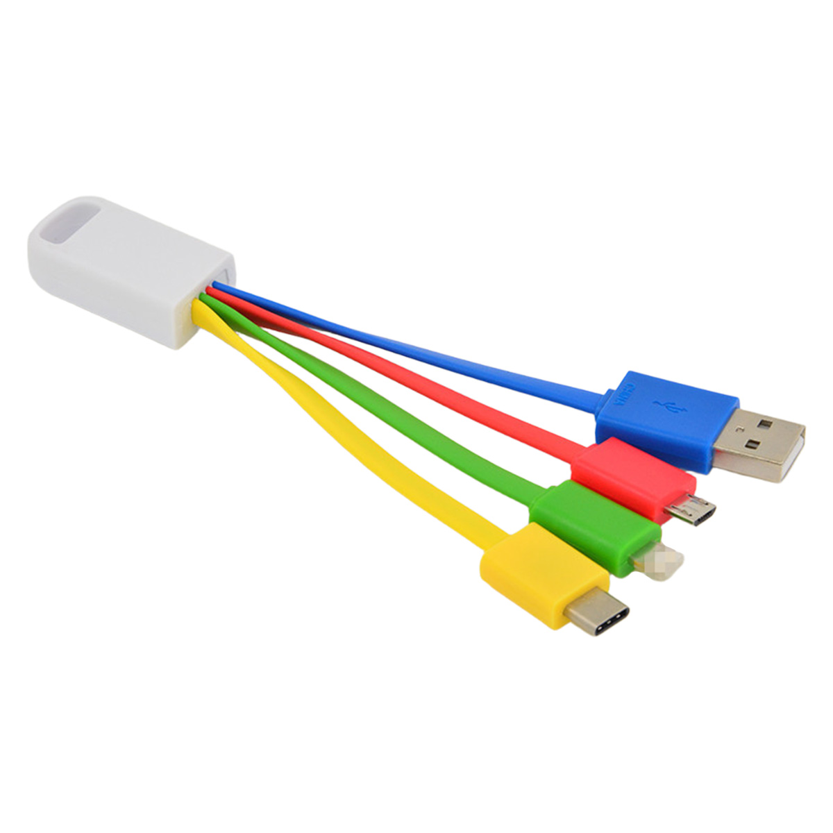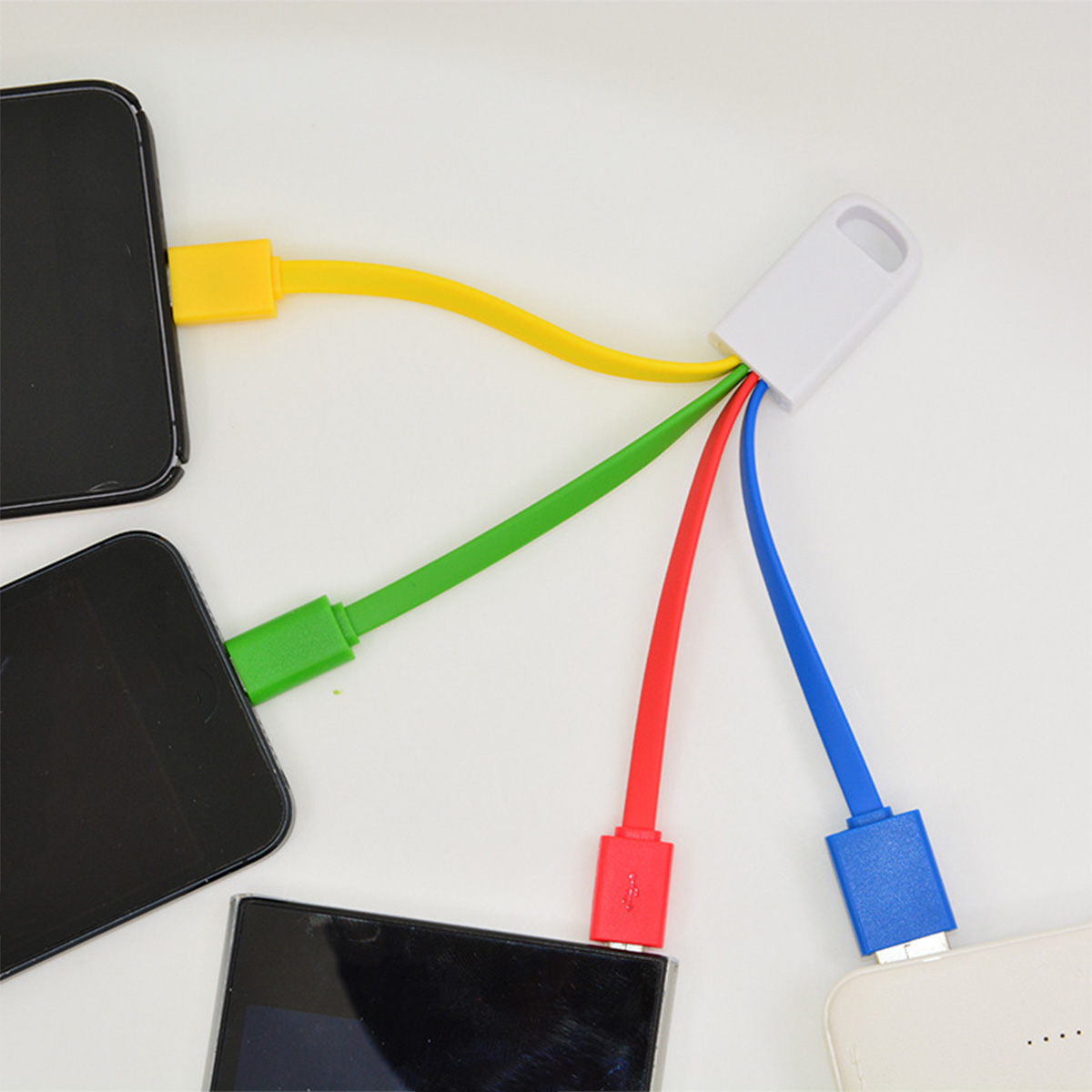 The 3-in-1 noodle multi charge cable is a lightweight and compact travel companion. It conveniently connects to your laptop or power bank, allowing for charging of multiple devices.