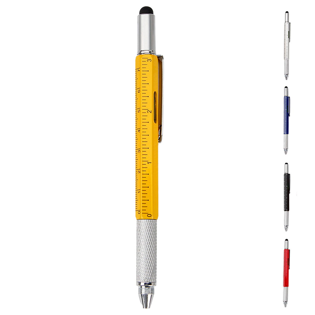 This metal 6-in-1 multi-function pen is a great promotional giveaway. It combines a ballpoint pen, ruler, level, and stylus with hidden screwdrivers. Its non-slip body is comfortable to use and the metal construction ensures durability. The rotary opening method prevents ink leaks and the metal clip secures it to your laptop, binder, or pocket.