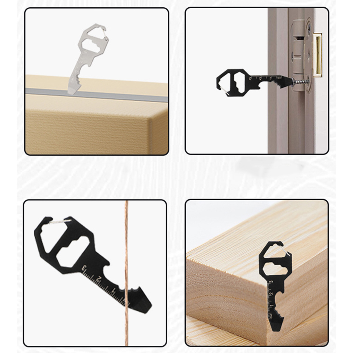 This stainless steel keychain is a practical and versatile tool. It combines six essential tools in one sleek design: file, scissors, and keyring and so on. Ideal for outdoor activities, DIY projects, or everyday tasks, this multifunctional keychain adds convenience to your daily life. Stay prepared and efficient with this all-in-one keychain that combines multiple functions in a compact and portable design.