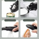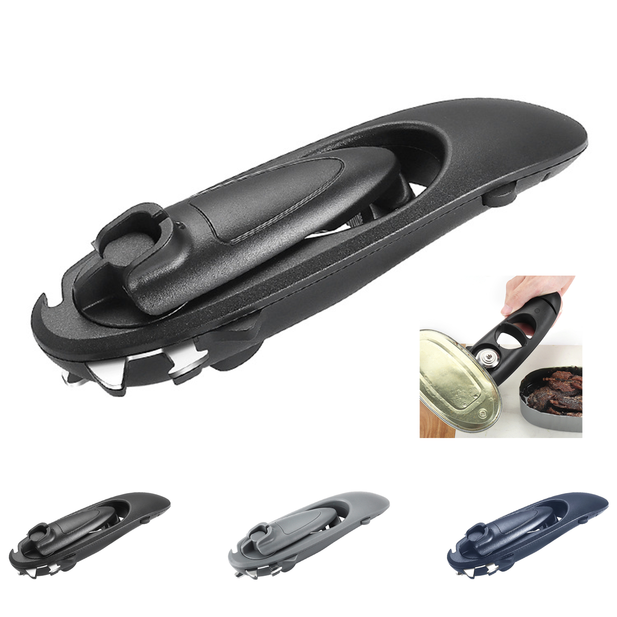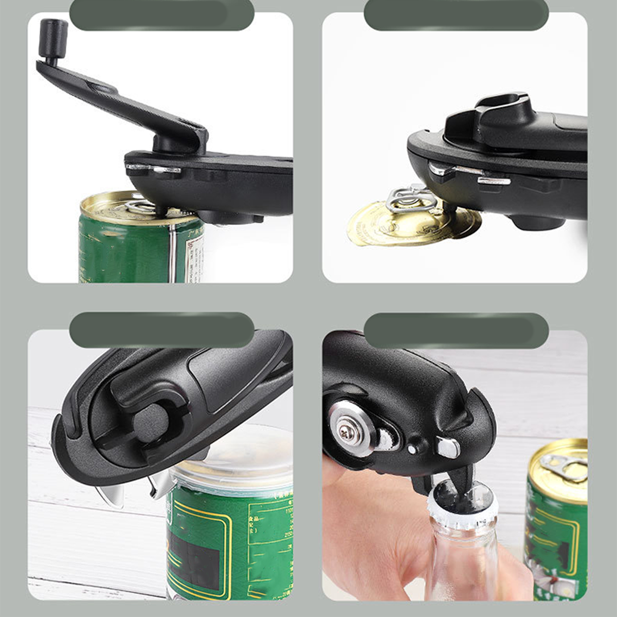 Introducing our can opener, the ultimate solution for effortless can opening. Its powerful 8-in-1 design ensures smooth cutting on any can, while its durable stainless steel and plastic construction guarantees long-lasting use. The ergonomic swivel handle provides ease of use for everyone, with a non-slip, thickened grip for enhanced stability and comfort. It even doubles as a bottle opener.