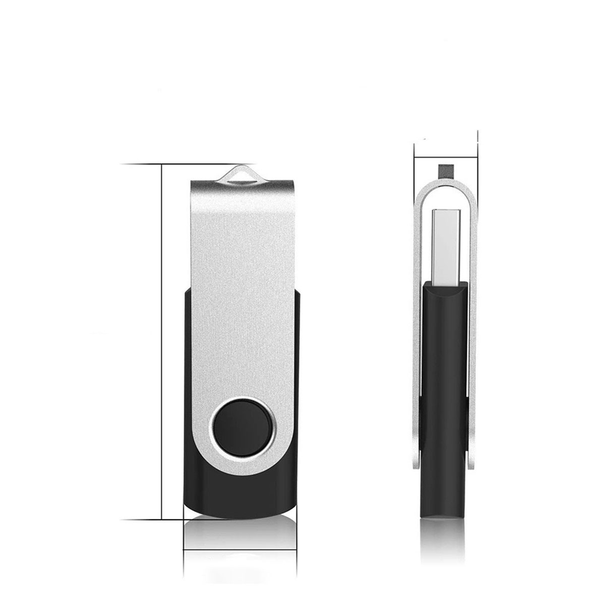 Introducing our versatile 8 GB dual input flash drive. Transfer and store files from your computer, phone, or USB device with ease. Ideal for sharing and storing digital data for school, family, friends, clients, and machines. Safely rotate the metal side to protect the USB end while on the go. The capless design with integrated loop allows for easy attachment to key chains, backpacks, and more.