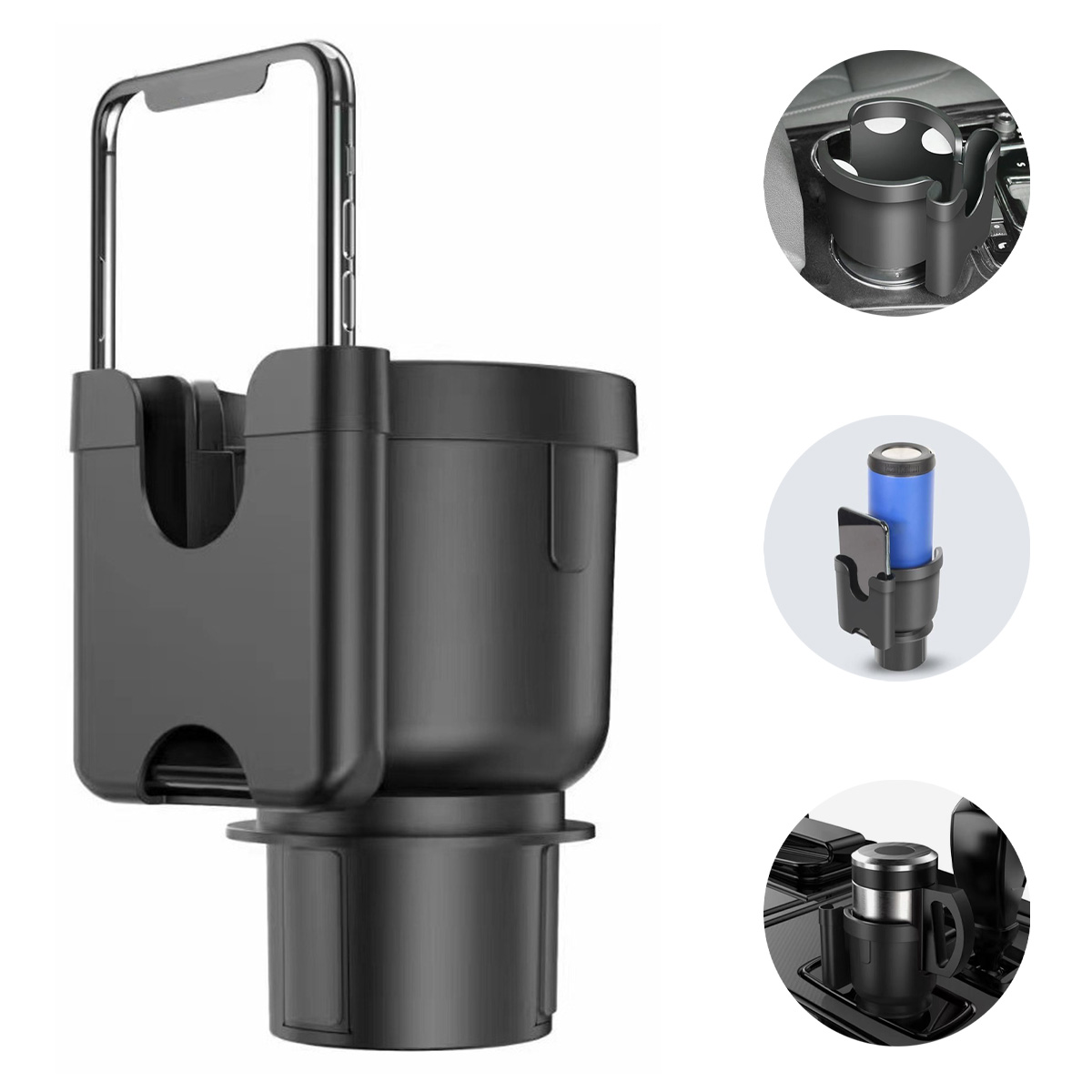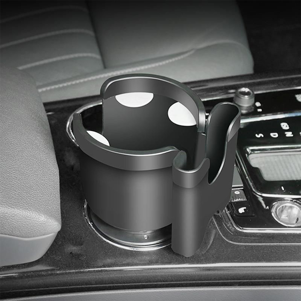 This versatile car bottle holder has an adjustable base that fits different car center console cup holders. Simply twist the top to expand or retract the base, ensuring a secure fit. It's not just for drinks - you can also use it to store your phone, glasses, coins, keys, wallet, and more!