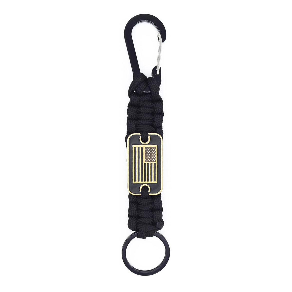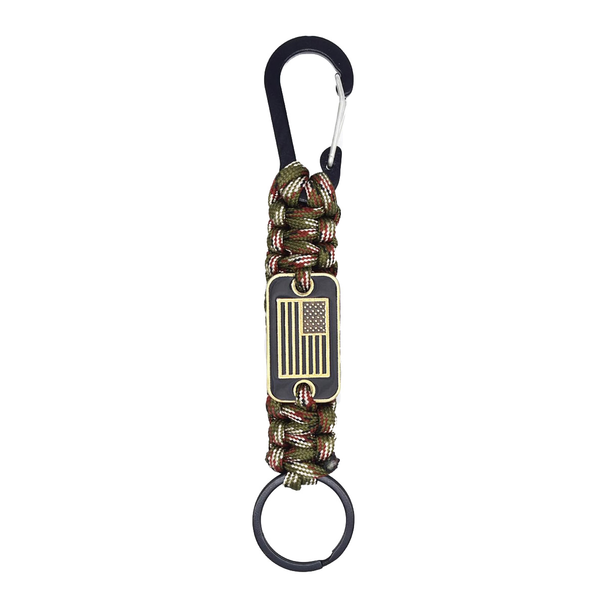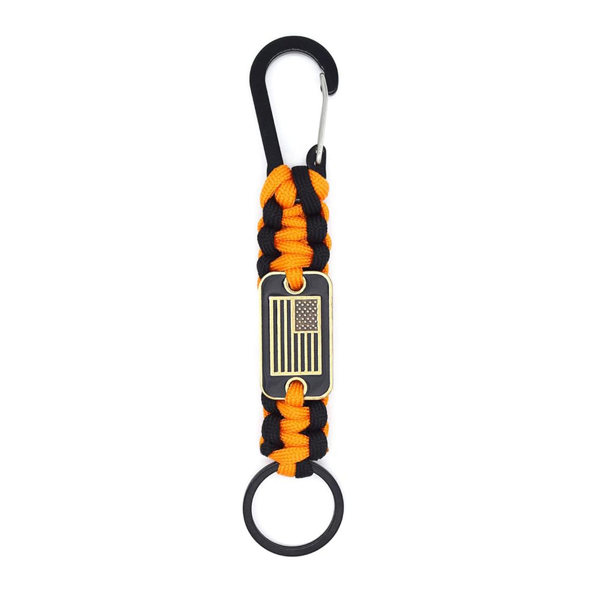Introducing the braided keychain with a carabiner clip and utility hook. This keychain embodies patriotism and usefulness, serving as a trendy accessory and handy tool for daily activities.