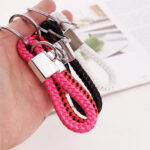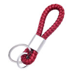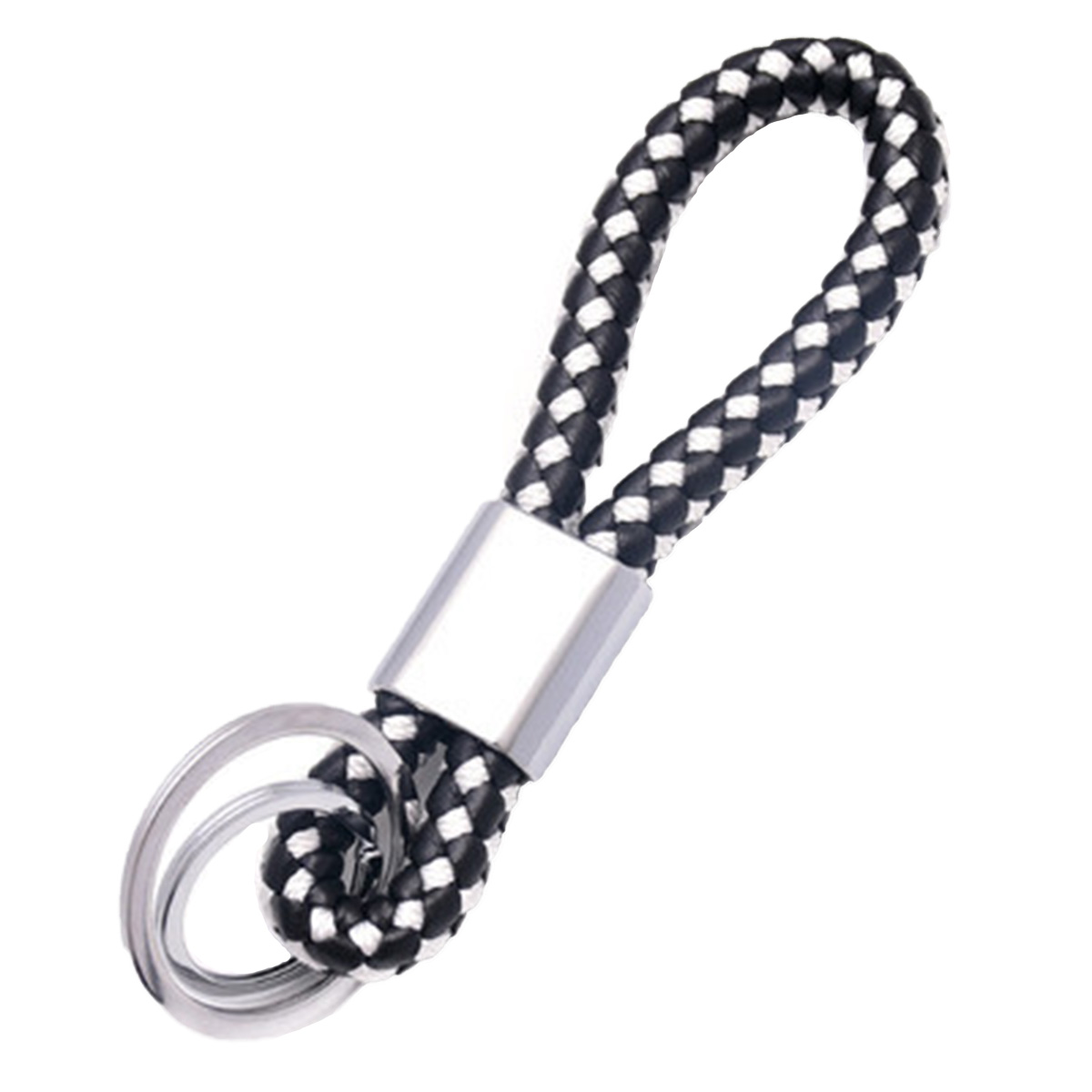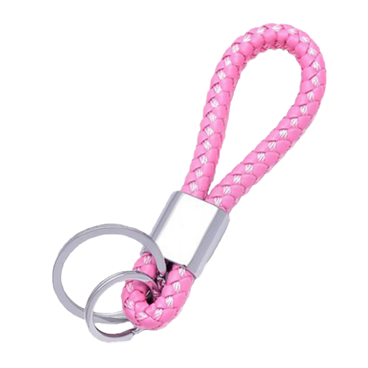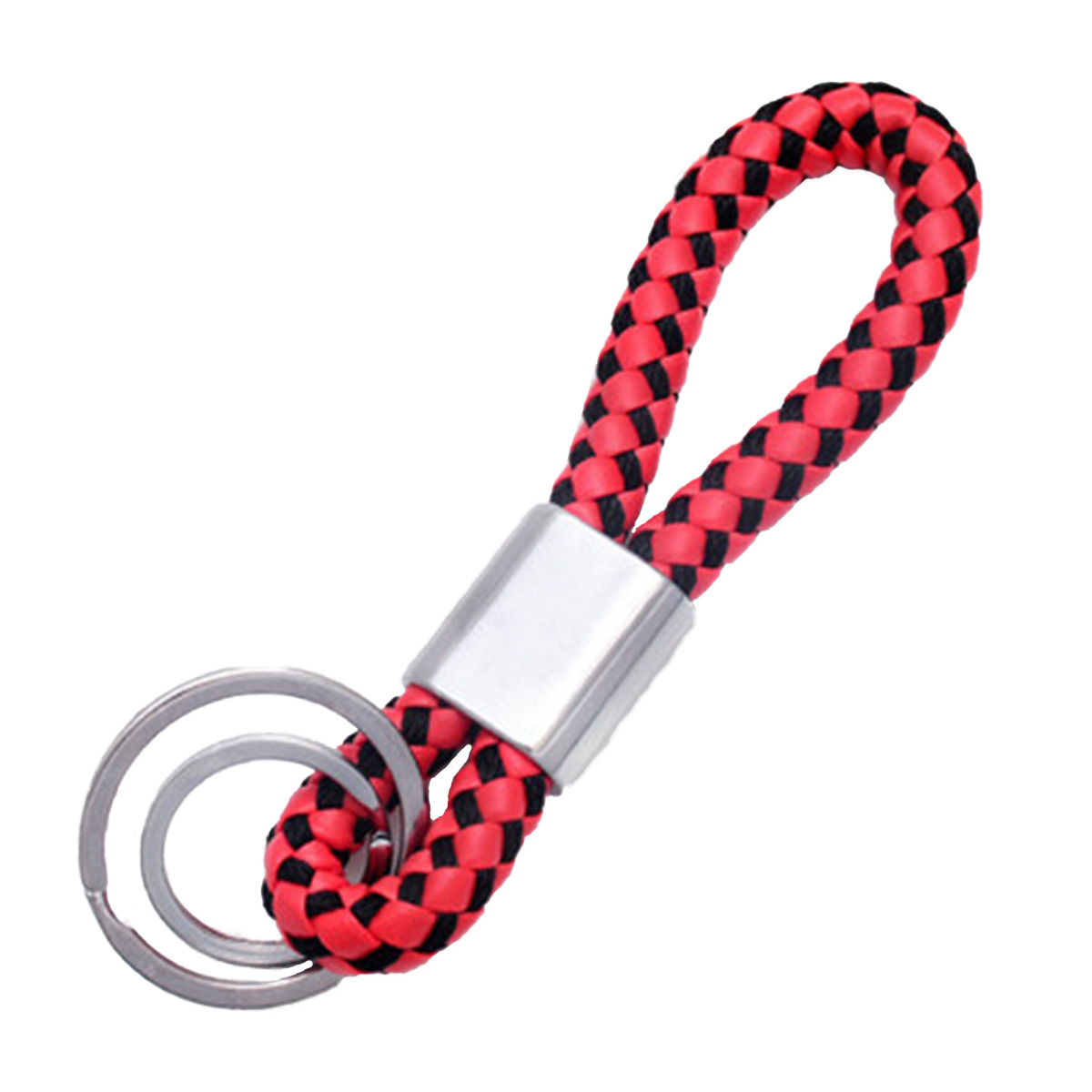 Made of durable metal, the braided leather rope design adds a modern touch. It can be used as a key ring or for carrying any desired item.