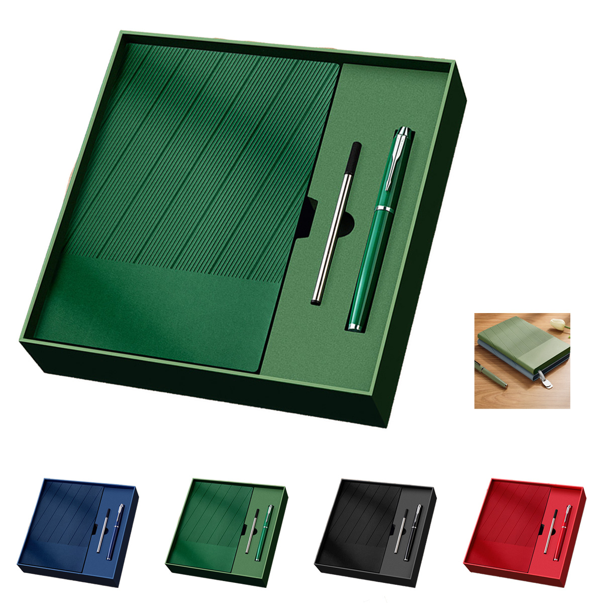 This notebook comes with a gift bag, gift box, signature pen, and pen refill. A great promotional item for organizing your office or as an elegant gift for business partners.