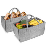 These spacious felt tote bags are crafted from eco-friendly polyester. They are for carrying essentials to school, work, or while traveling.