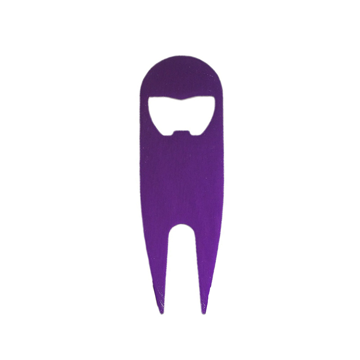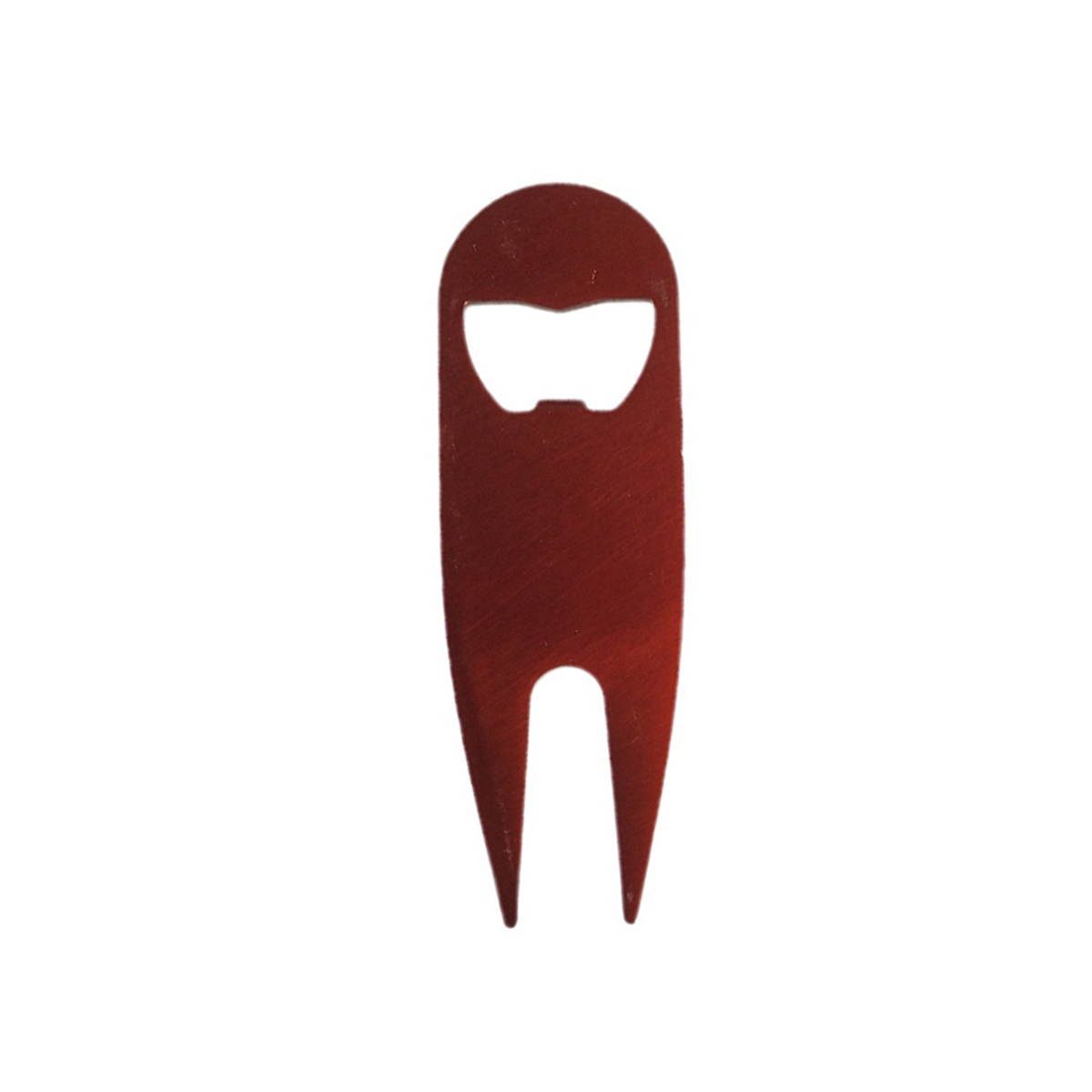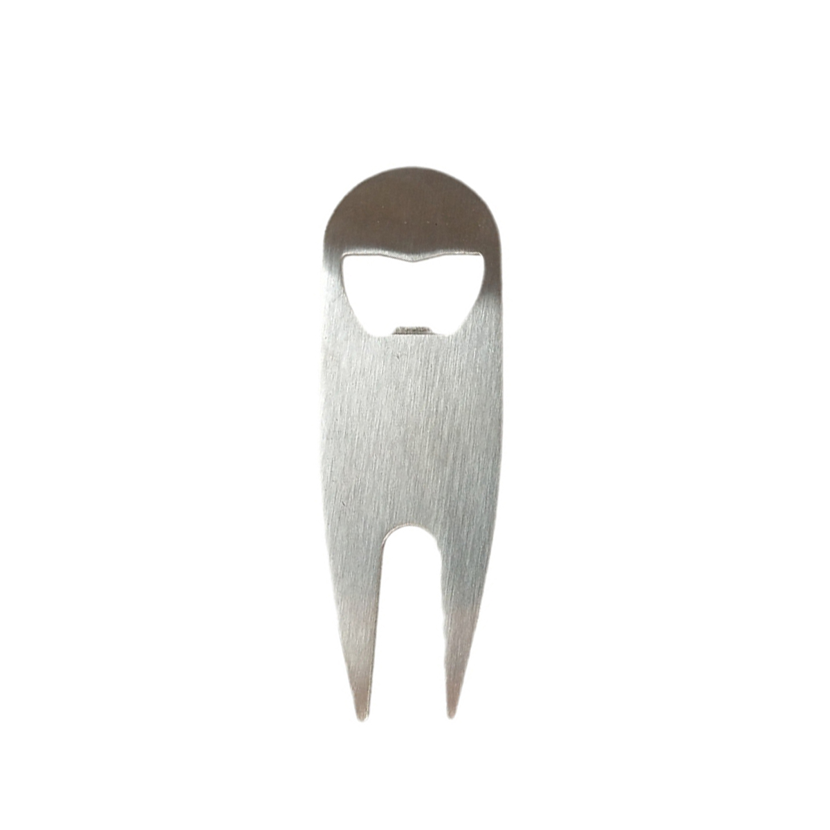 Golf divot repair tool which incorporates divot fixer, bottle opener with magnetic cap catcher, cigar holder, club rest, and can tab opener. An essential giveaway for golf courses, sporting goods stores and corporate outings.