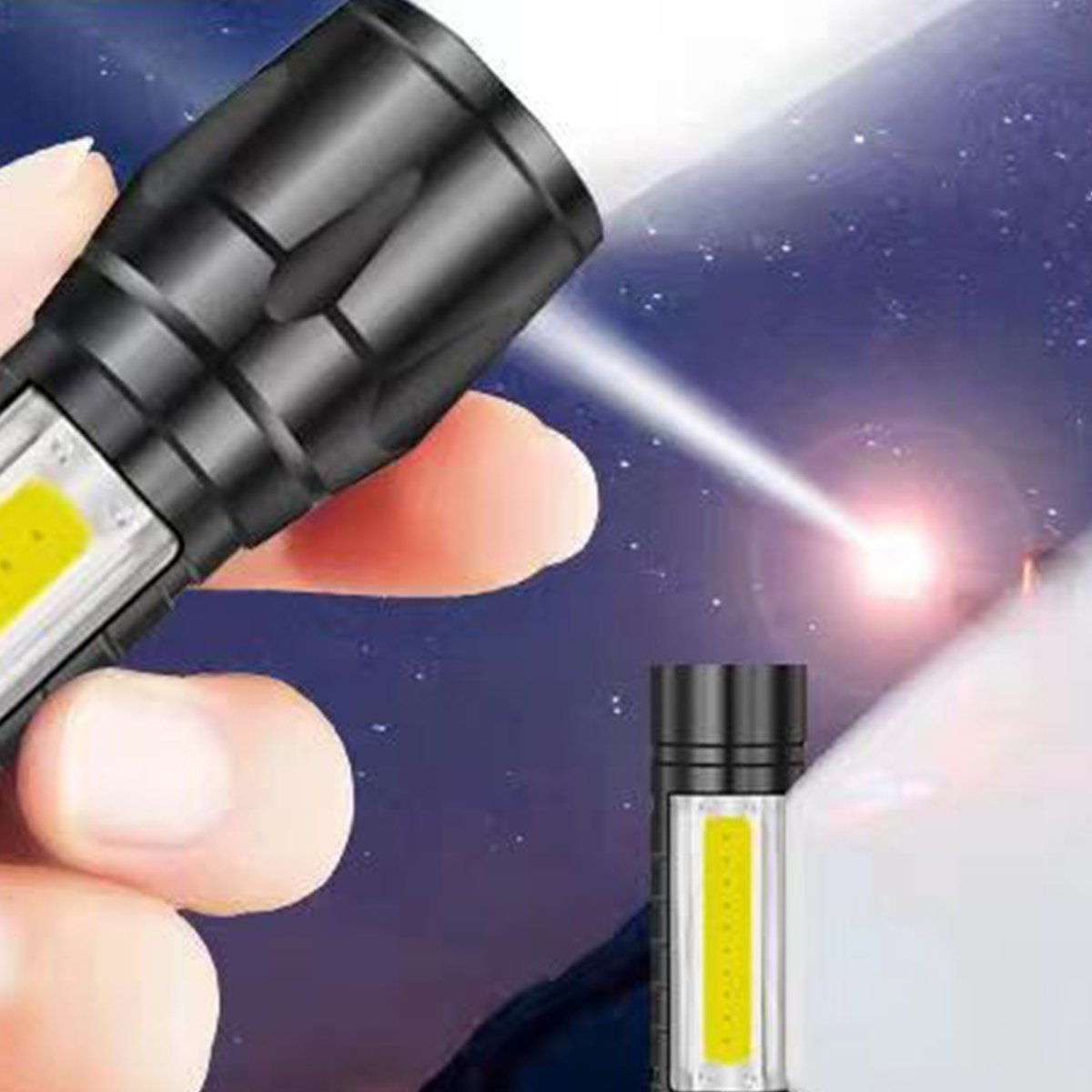 This versatile mini flashlight packs a powerful punch. The sidelight offers everyday illumination, while the main beam adjusts from wide to narrow for focused light. Perfect for home, car, dog walks, or camping. Multiple modes include high brightness, SOS strobe, and a work light. This compact, USB-chargeable flashlight features a durable aluminum body that's water-resistant for all-weather use. Clip it on, toss it in your bag, or use the pocket clip for hands-free.