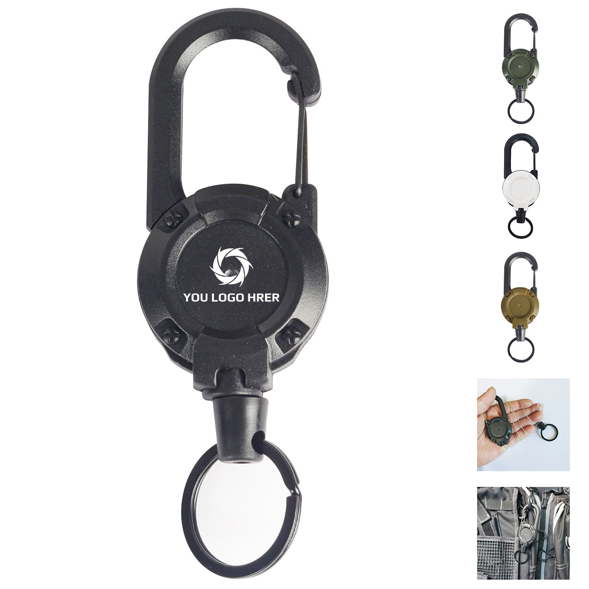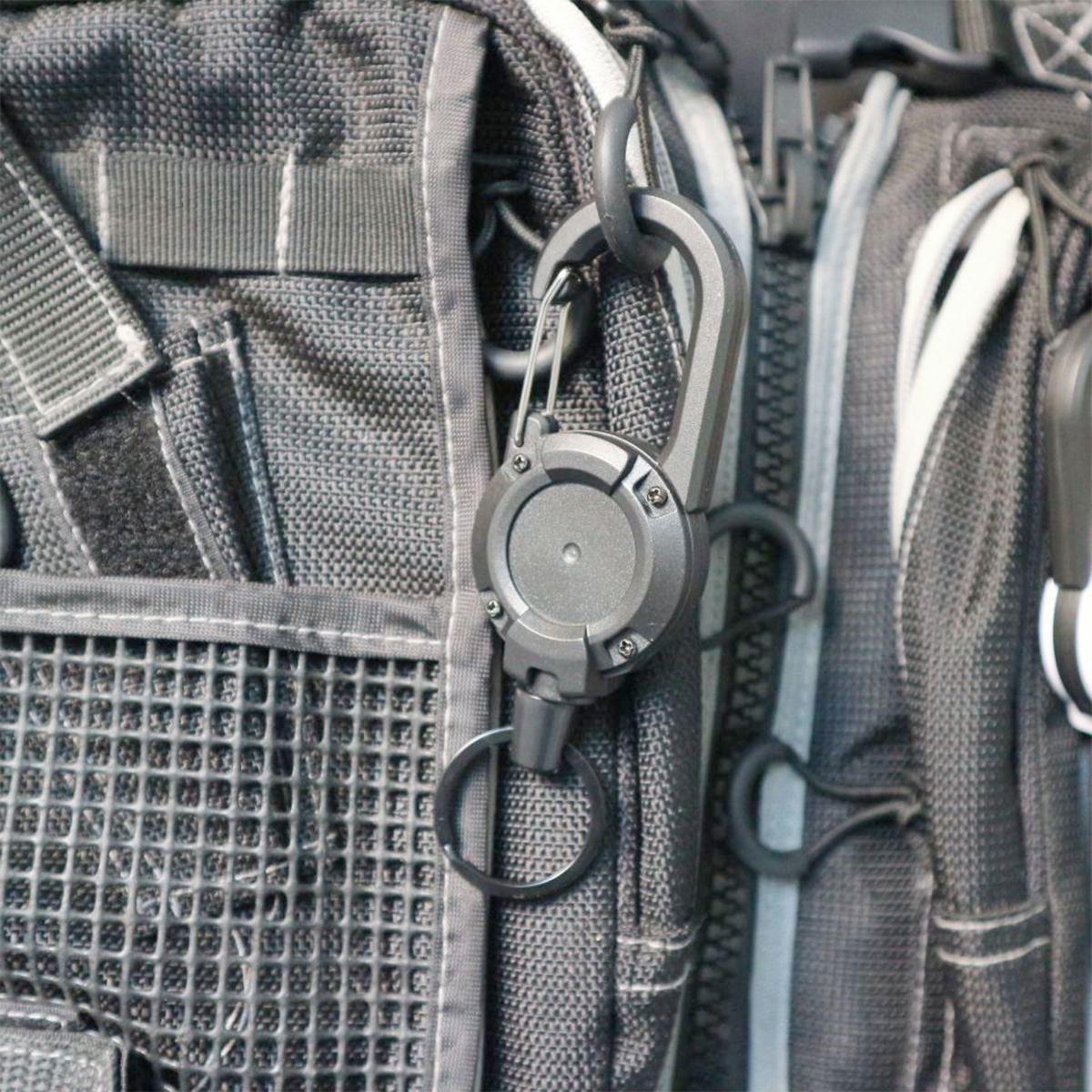 Introducing our heavy duty keychain for easy and convenient carrying. Made with a strong stainless steel cord, it can withstand over 100,000 retraction cycles. The extended pressing area makes it easy to secure keys, flashlights, or small tools. Made with lightweight yet durable ABS materials, it's ideal for everyday use, outdoor adventures, or tactical applications.