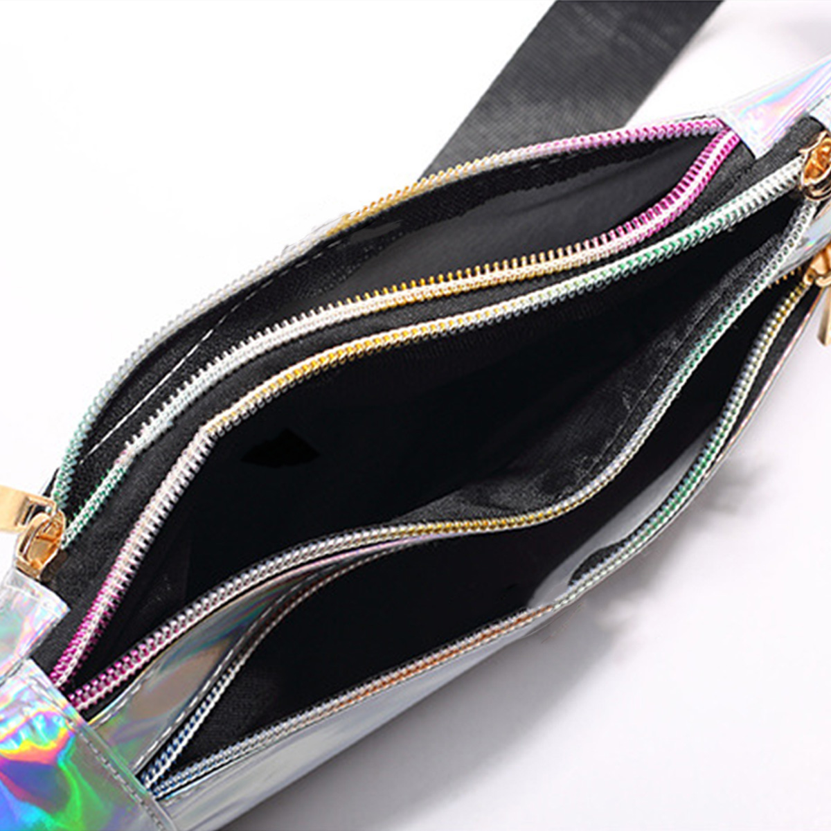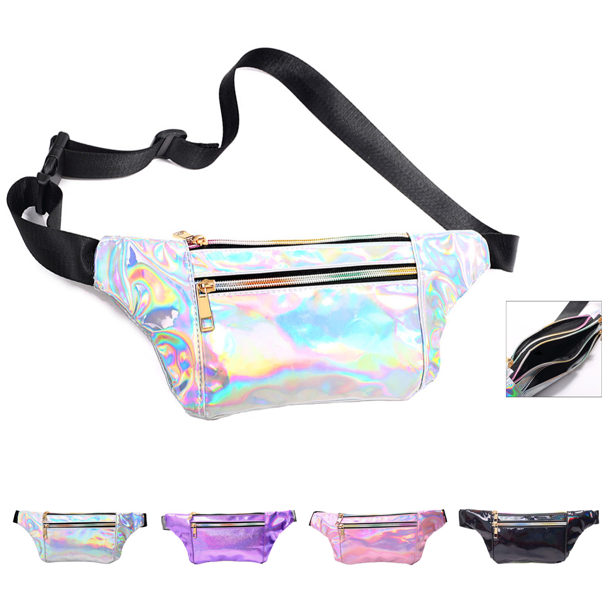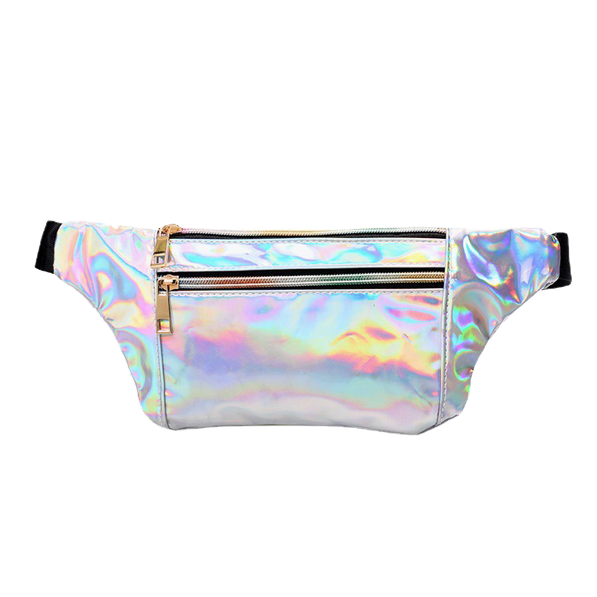 The holographic fanny pack is stylish and eye-catching with its hologram laser design. Made of durable and water-repellent PU material, it offers long-lasting use. It's perfect for holding your essentials such as a wallet, keys, cellphone, and cards. Suitable for activities like shopping, traveling, walking, and cycling. The flexible strap and strong buckle allow for easy adjustment and multiple wearing options.