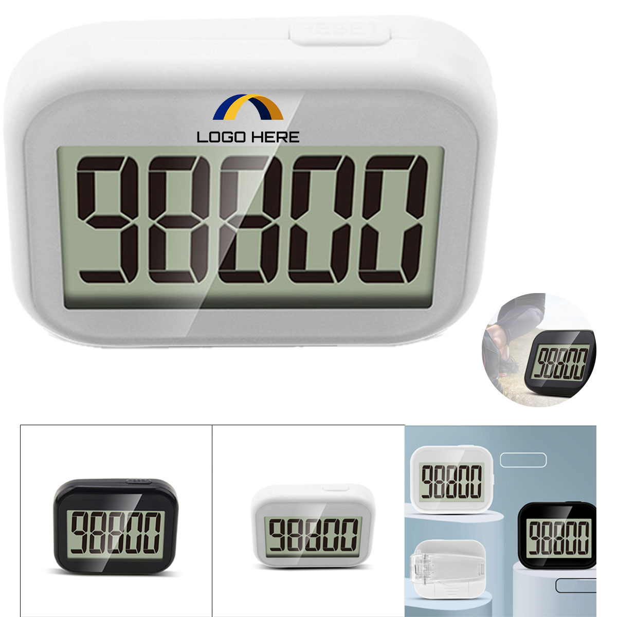 Introducing our clip-on pedometer made from durable ABS material. Easily attach it to your bag or body to track your steps accurately and effortlessly. Stay motivated to reach your fitness targets by checking your step count conveniently. With a simple button press, start tracking your progress instantly.
