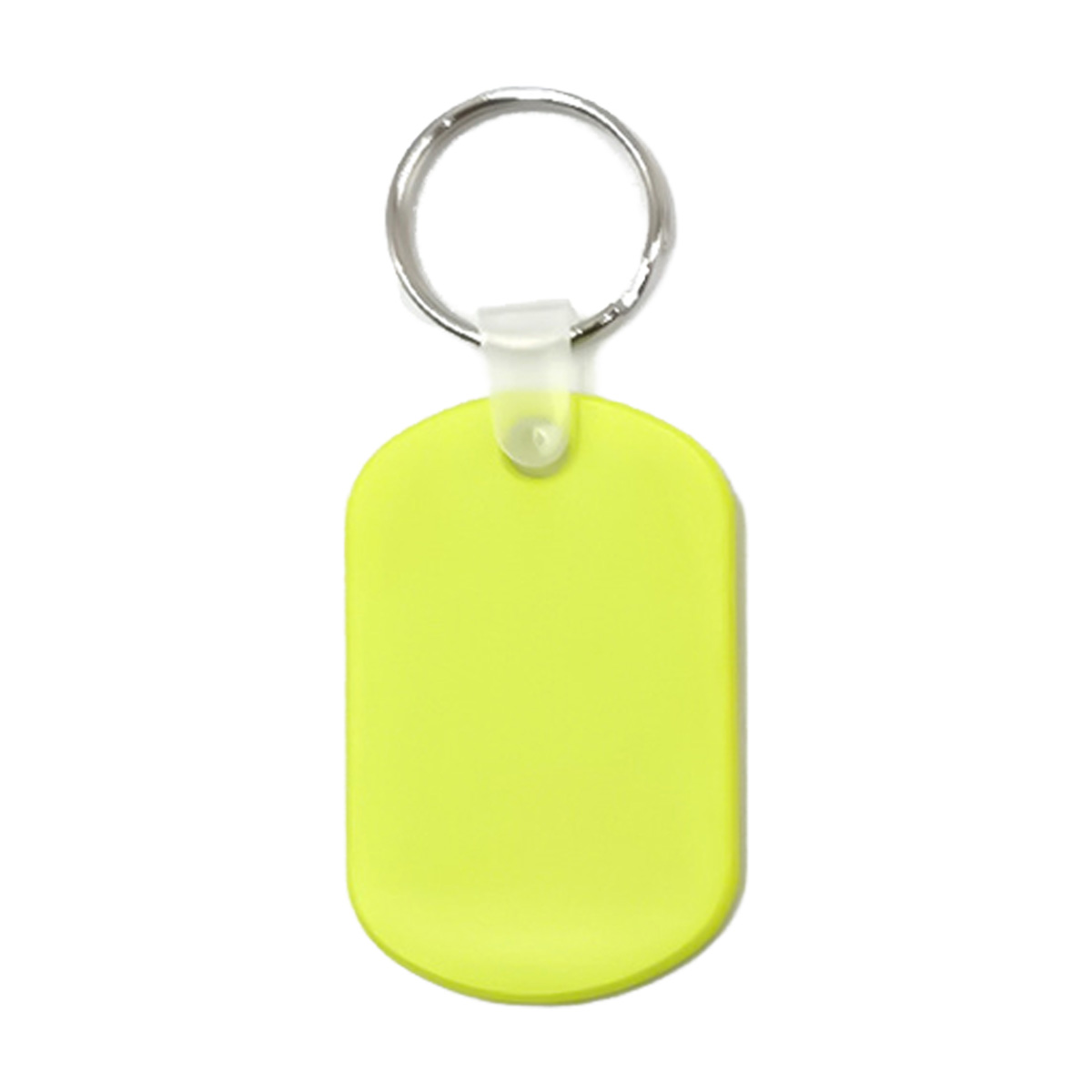 Made from flexible PVC plastic. This oval-shaped key tag has a snap-on clip, a high gloss finish, and a metal split ring, keeping keys secure and accessible. Use it as a key tag, luggage tag, or queue number.