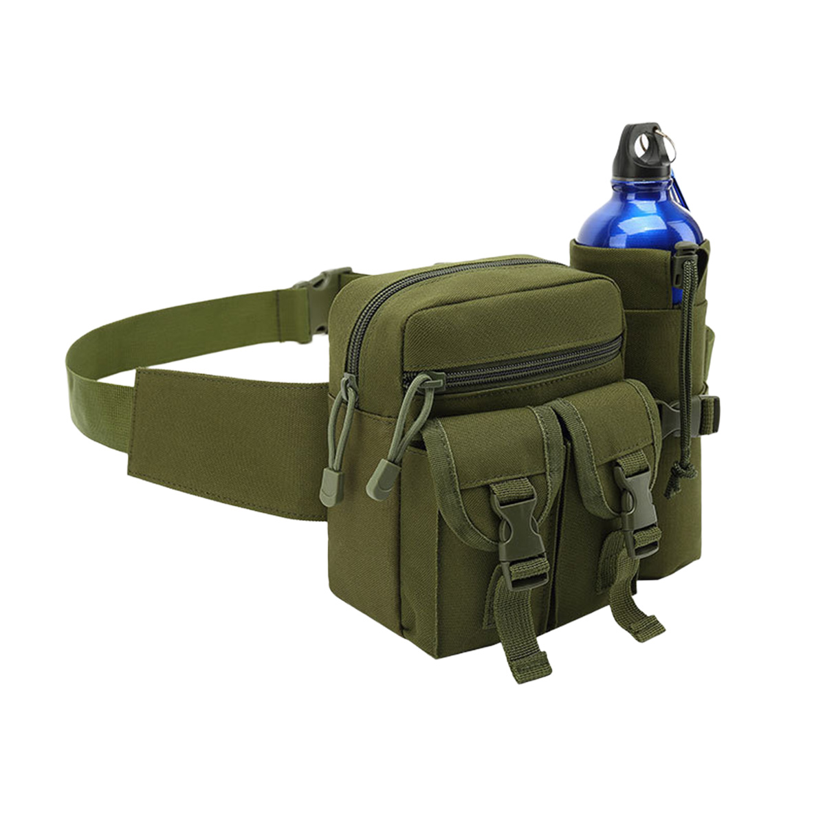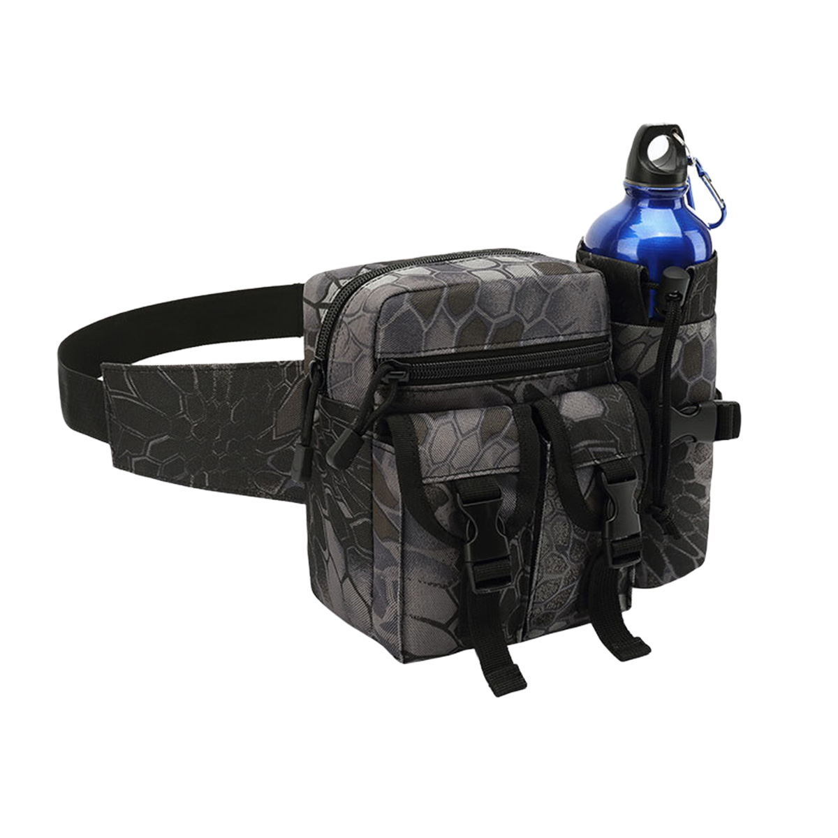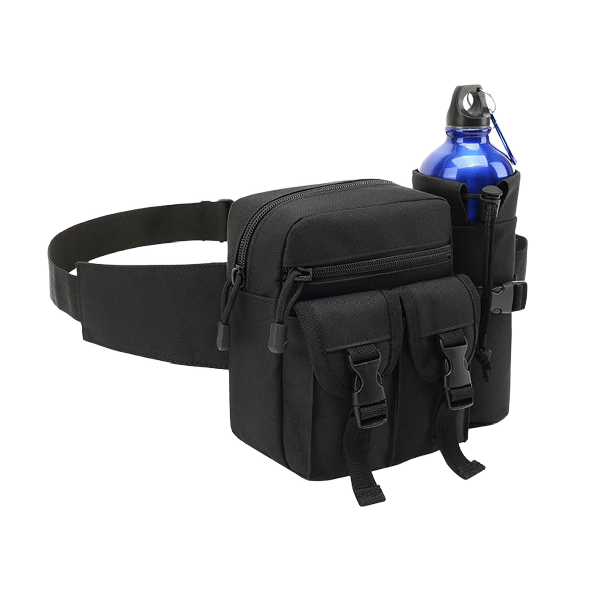 This durable and versatile fanny pack is perfect for outdoor enthusiasts. Made with a waterproof oxford material, it keeps your belongings dry in any weather. It features a tactical design with a water bottle holder and waterproof phone pocket for added convenience and protection. With ample storage space and an waist strap, it is suitable for various outdoor activities like hiking and cycling.