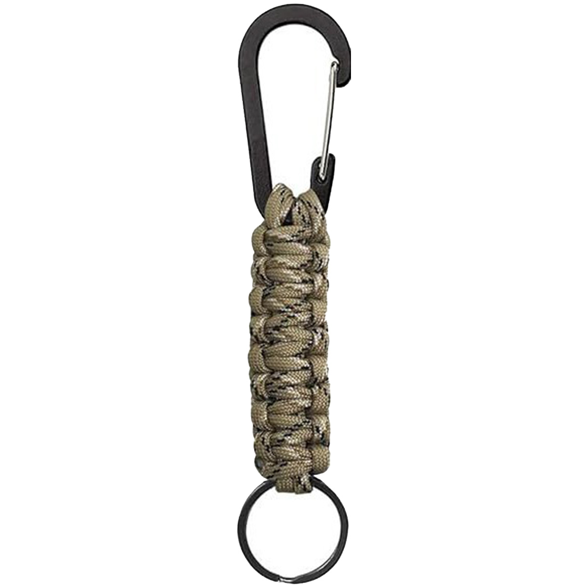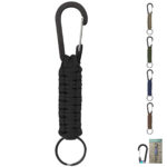 This durable paracord keychain is crafted from braided nylon lanyard and features a metal ring and carabiner. It makes for a perfect gift for outdoor enthusiasts, friends, and family. Its heavy-duty design allows it to securely hold small tools like a flint scraper, cutting tool, emergency whistle, knife, mini flashlight, and scissors.