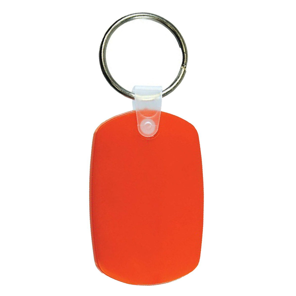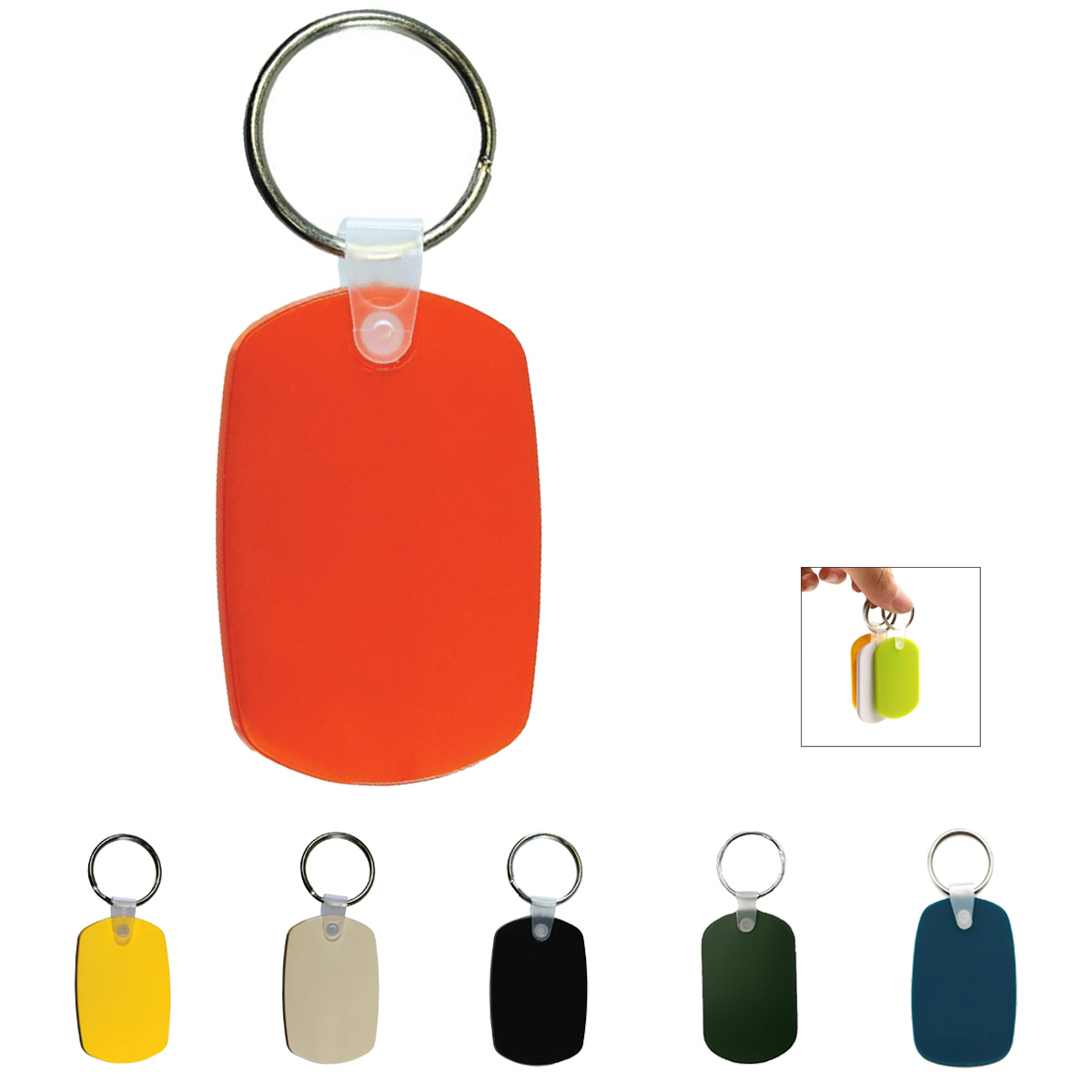 This classic and undying basic oval shape key tag is made of flexible PVC plastic, soft, yet thick and pliable. Come with unique snap-on clip, durable high gloss finish, and metal split ring.