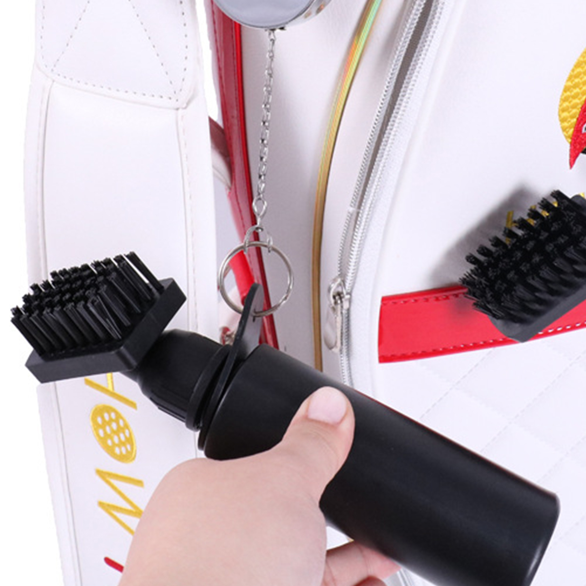 The nylon brush is sturdy and reliable, and the large golf brush head covers a wider area when cleaning the golf club. We replaced the golf club brush groove cleaner head handle with a press spray water bottle, which allows you to get cleaning water while cleaning the golf club, reducing the process required for cleaning jobs, the built in leakproof water storage bottle can hold up to about 4 ounces of water and then be squeezed out to remove dirt and grass on the gold club.