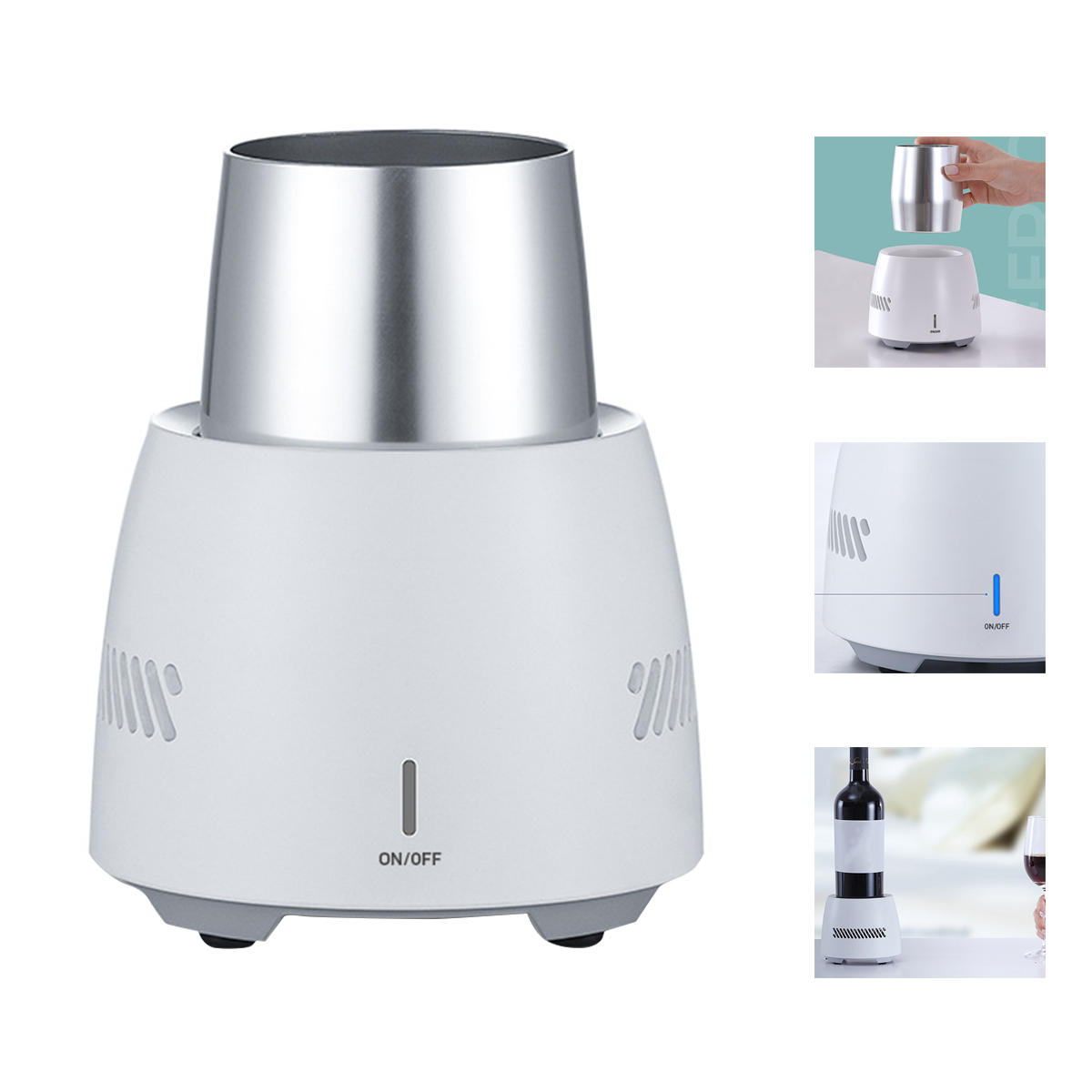 Your parties, tailgates and celebrations can enjoy the ultimate in cool with this portable beverage cooler. Made of plastic with an aluminum core, this device employs two quick cooling methods for your favorite drinks. Place a can into the sleeve, or pour drinks directly into the cup. When activated, drinks are chilled out to 28 degrees Fahrenheit in about 16 minutes -- five times as fast as a conventional fridge. Silent operation won't disturb your party guests.