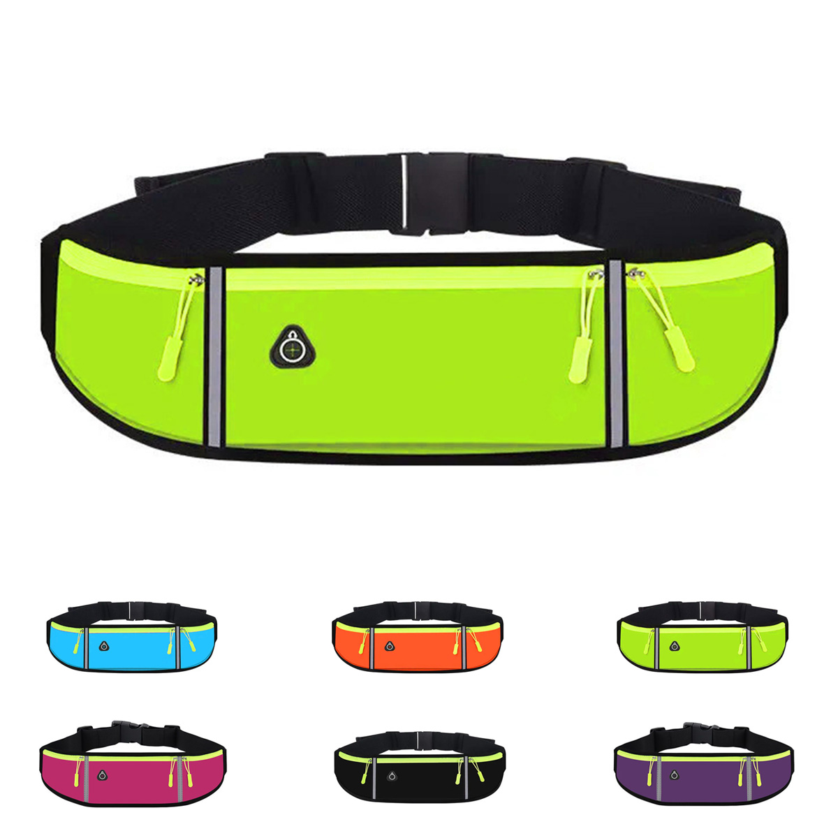 The running belt made of nylon fabric that wicks away moisture, dries quickly. It can hold smartphones, passport, keys, credit cards, money, and energy gels. For various exercises like walking, running, hiking, biking, gym workouts, and more.