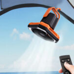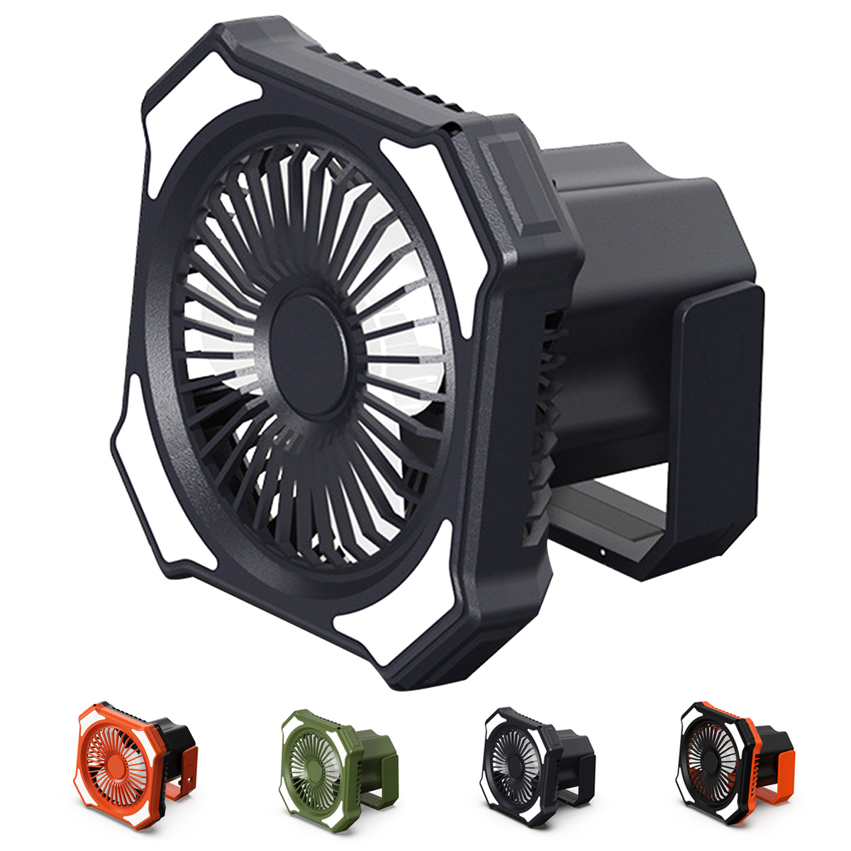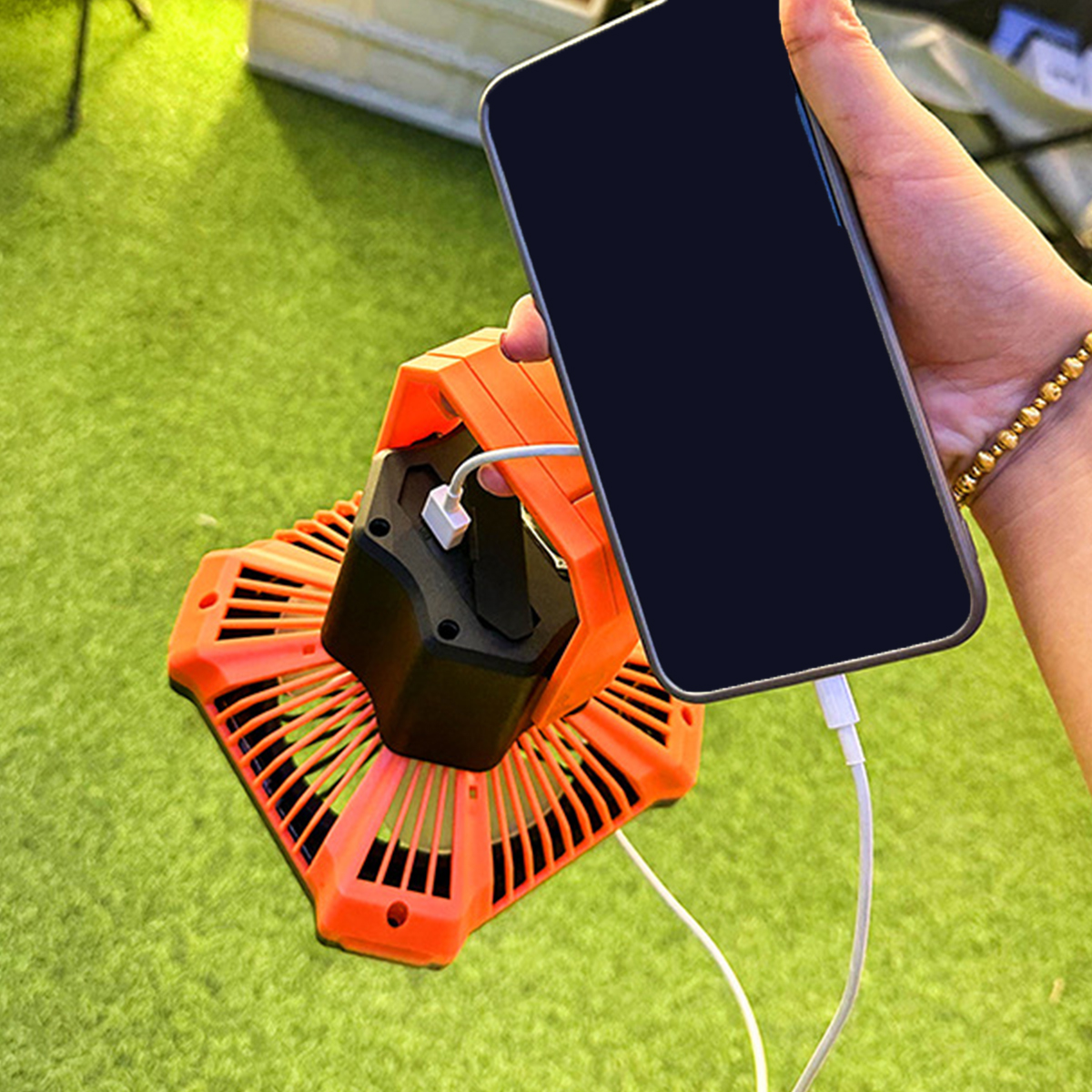 Powered by 10000 mAh rechargeable battery, it can be fully charged in 2.5 hours and provide 8-20 hours. 3 kinds of brightness settings, providing the ideal light source for outdoor activities at night. In addition, 3 different speeds can meet your different needs. Fan and LED lights are controlled separately. 4 battery lights show your remaining battery capacity. The bottom has a foldable hooks to hang the tent fan wherever you want.