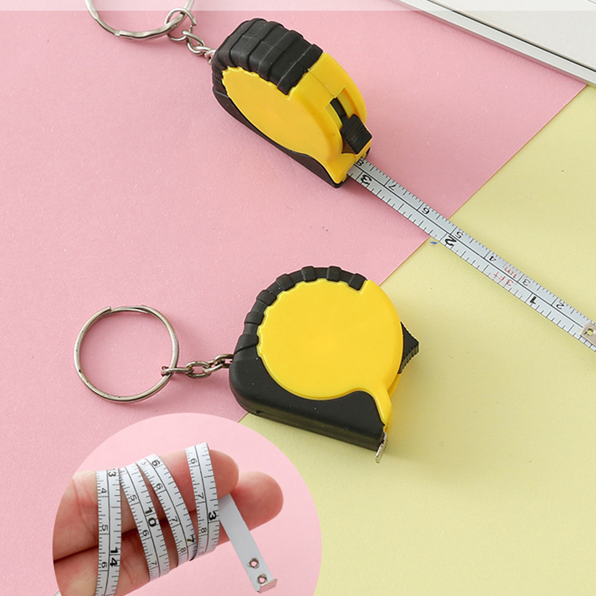 This compact keychain tool has a tape measure. Its retraction and locking feature guarantee accuracy. With an attached keychain, it is convenient to carry along with your keys or handbag.