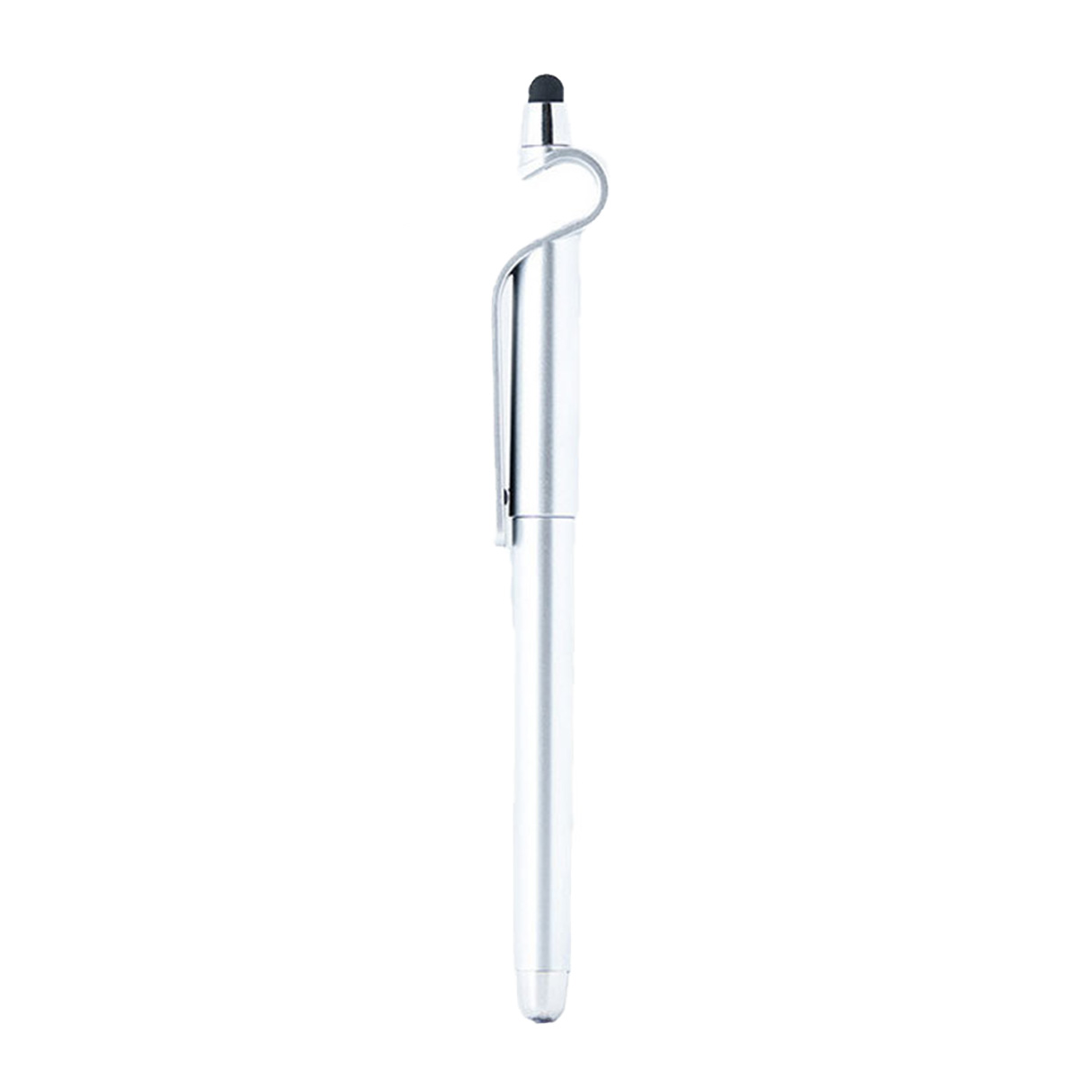 This touch screen pen is a handy tool with a QR code printer and phone holder. Made from high-grade plastic, it is durable and resistant to rust and breakage. Its unique screw-type protection design reduces finger fatigue during long writing sessions. The pen's clip can be used to secure tablets and smartphones of all sizes, and the bottom features a touchscreen design for easy tapping. Its compact and lightweight design makes it portable.