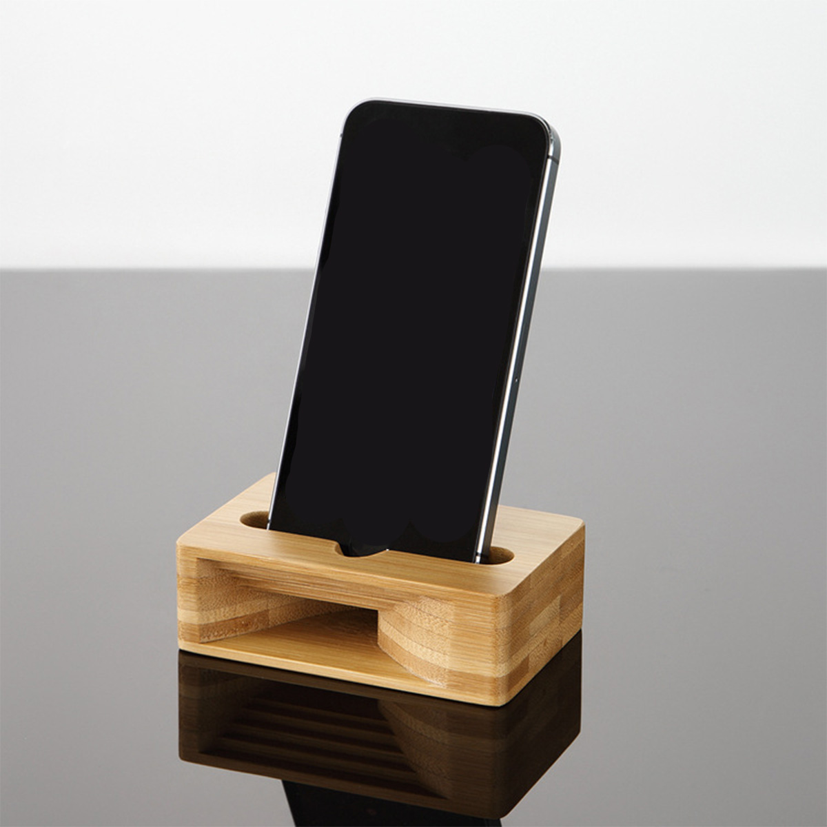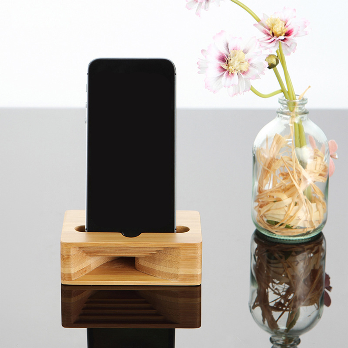 Universal wooden phone desk stand, lightweight and stylish, enhances the audio without battery or power supply. Perfect for smartphone owners and music enthusiasts.